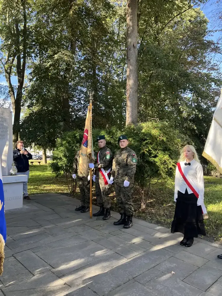 W dniu 26 września 2025 roku uczniowie klas mundurowych naszej szkoły wraz z przedstawicielami lokalnych samorządów i środowisk kombatanckich spotkali się, aby uczcić 86. rocznicę powstania Polskiego Państwa Podziemnego. Delegacje złożyły kwiaty i znicze pod pomnikiem Tajnej Organizacji Nauczycielskiej przy Zespole Szkół Ogólnokształcących im. Henryka Sienkiewicza, w Parku Niepodległości przy pomniku Żołnierzy Podziemia oraz w miejscu straceń – lesie w Korzonku. Uroczystą mszę świętą w intencji Ojczyzny odprawił proboszcz parafii św. Zygmunta w Szydłowcu.
