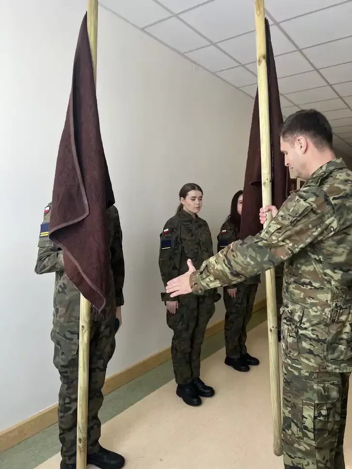 Ćwiczenia obejmowały szereg praktycznych elementów, takich jak musztra zespołowa i indywidualna, marsz, zatrzymanie, oddanie honorów, przeformowanie – szyk dwójkowy i czwórkowy, występowanie z szyku oraz przemarsz ze sztandarem. Uczniowie sumiennie wykonywali wszystkie powierzone im zadania, wykazując pełne zaangażowanie.