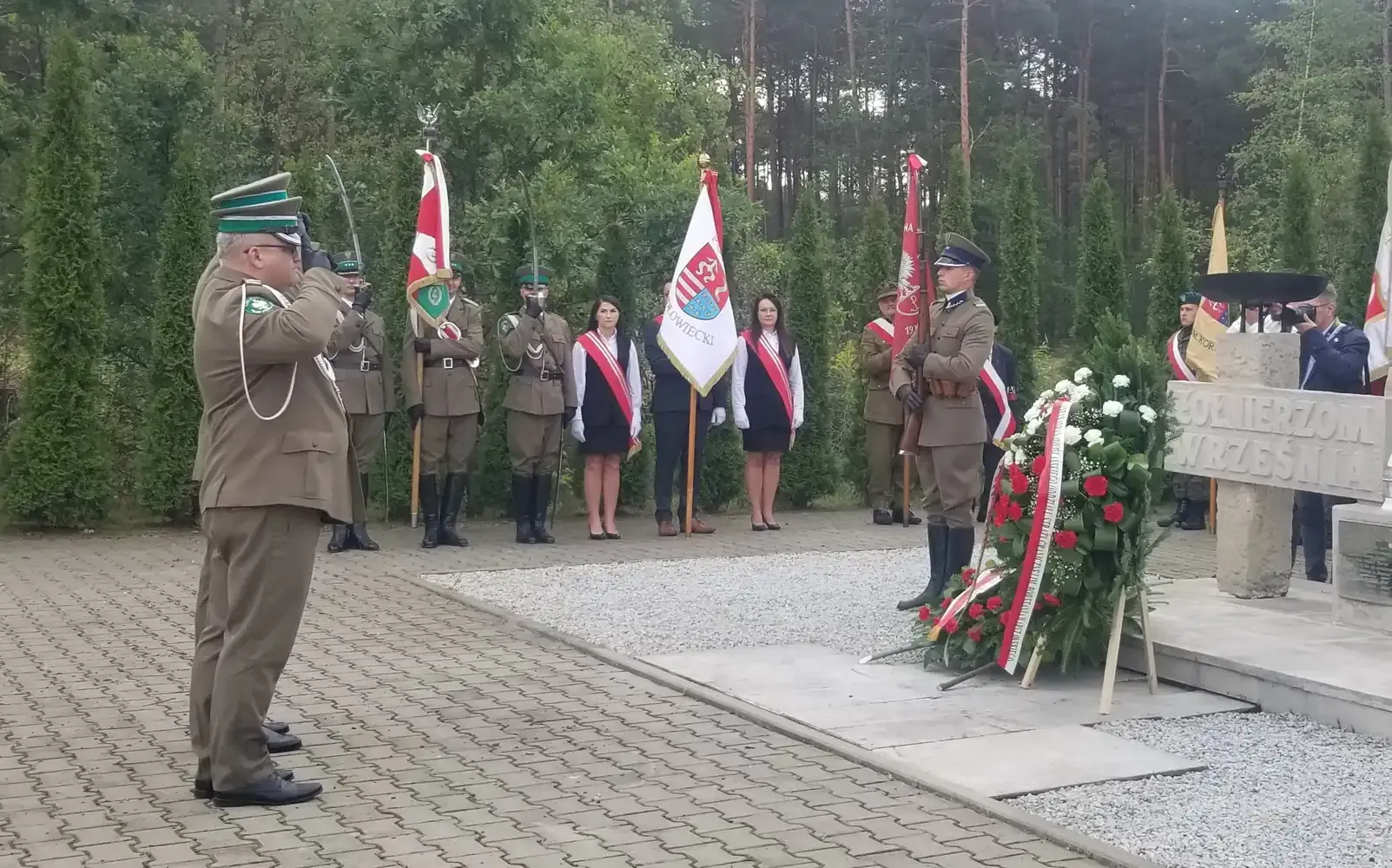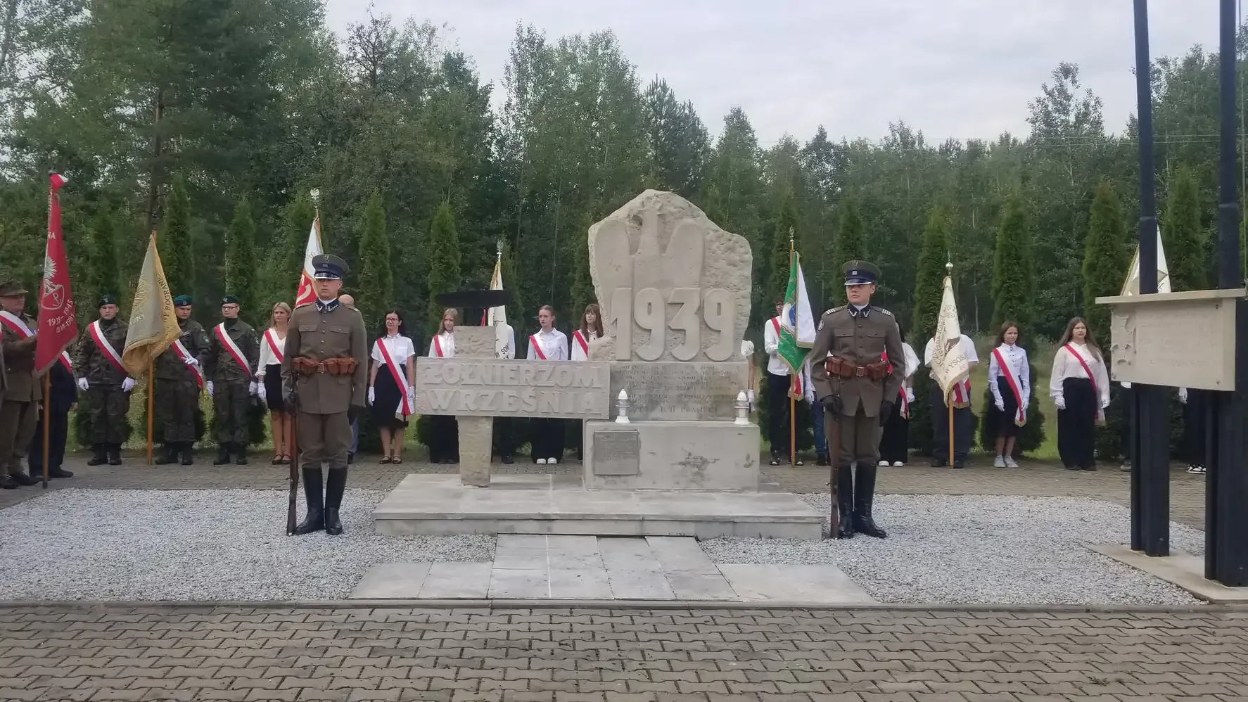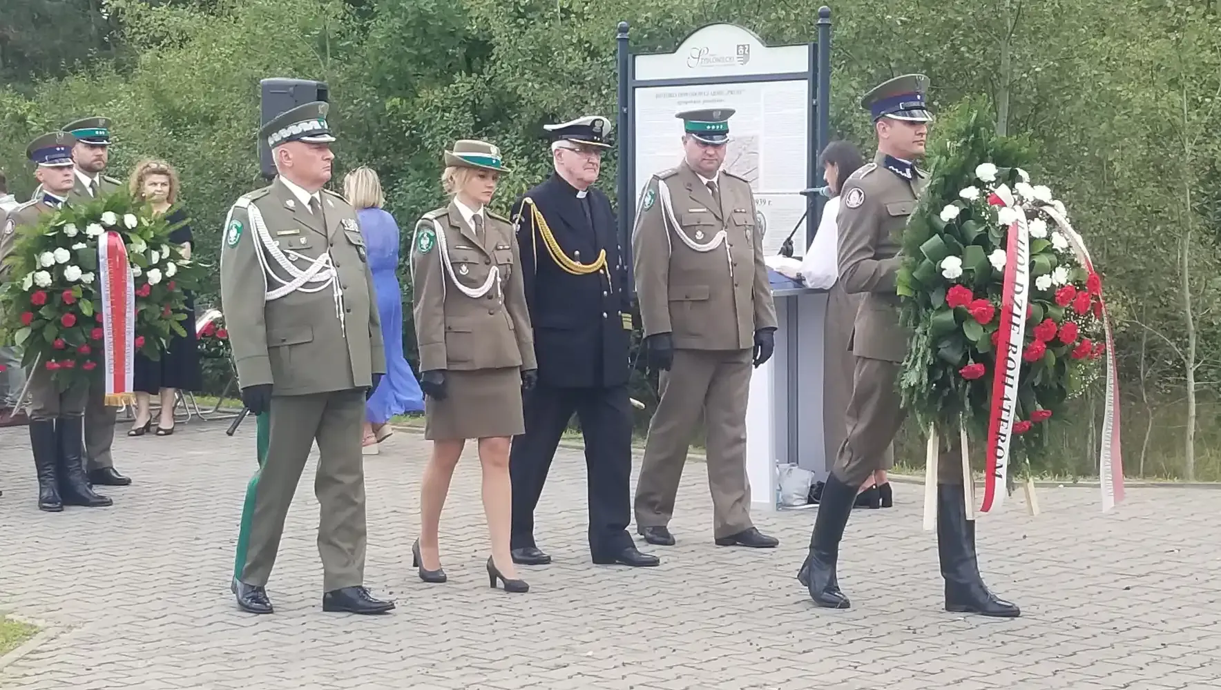 Następnie uczestnicy obchodów przenieśli się na plac Zespołu Szkół im. Korpusu Ochrony Pogranicza. Tam, przy pomniku „Żołnierzy Korpusu Ochrony Pogranicza – Obrońców Polskich Granic 1924–1939”, odbyła się dalsza część uroczystości. Po raz kolejny wybrzmiały przemówienia podkreślające znaczenie pamięci o tych, którzy stali na straży polskich granic w burzliwych czasach międzywojnia. Również tutaj nie zabrakło wzruszających momentów składania kwiatów przez delegacje, które z szacunkiem pochylały się nad pamięcią o poległych.