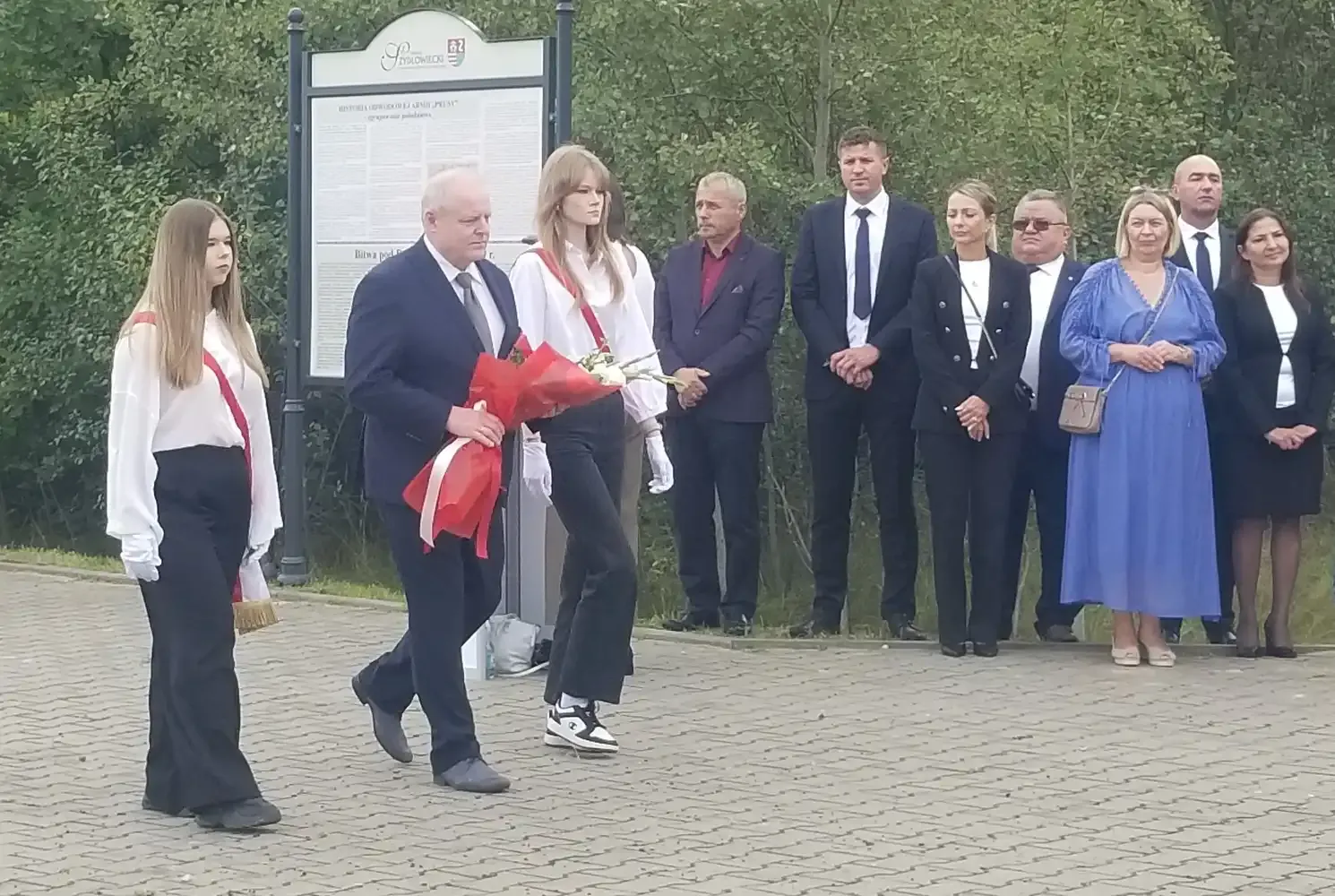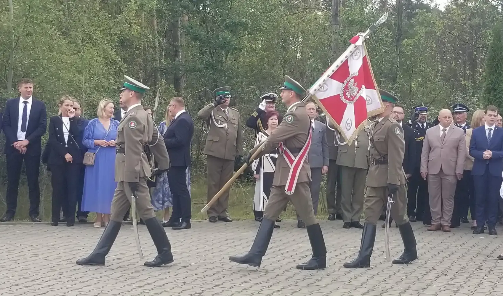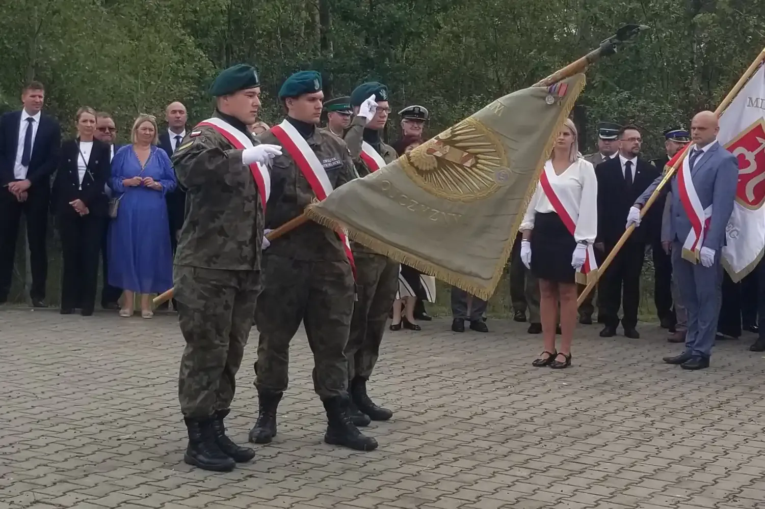 Następnie uczestnicy obchodów przenieśli się na plac Zespołu Szkół im. Korpusu Ochrony Pogranicza. Tam, przy pomniku „Żołnierzy Korpusu Ochrony Pogranicza – Obrońców Polskich Granic 1924–1939”, odbyła się dalsza część uroczystości. Po raz kolejny wybrzmiały przemówienia podkreślające znaczenie pamięci o tych, którzy stali na straży polskich granic w burzliwych czasach międzywojnia. Również tutaj nie zabrakło wzruszających momentów składania kwiatów przez delegacje, które z szacunkiem pochylały się nad pamięcią o poległych.