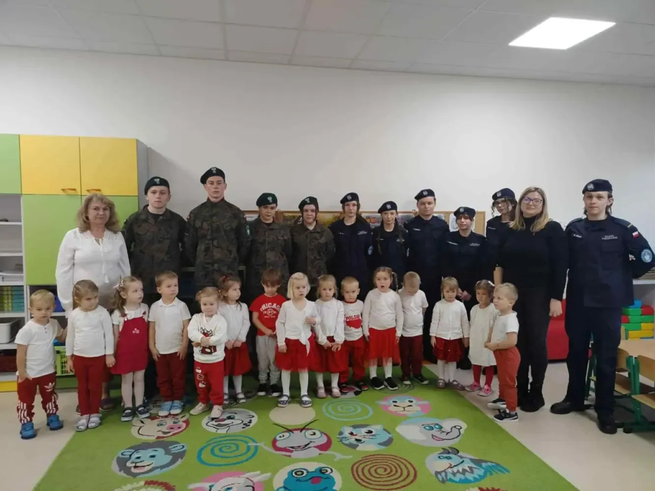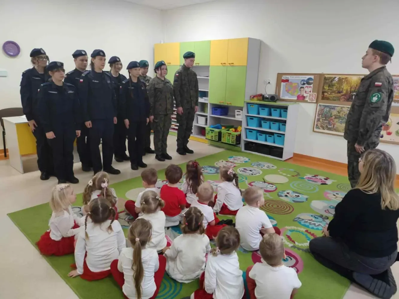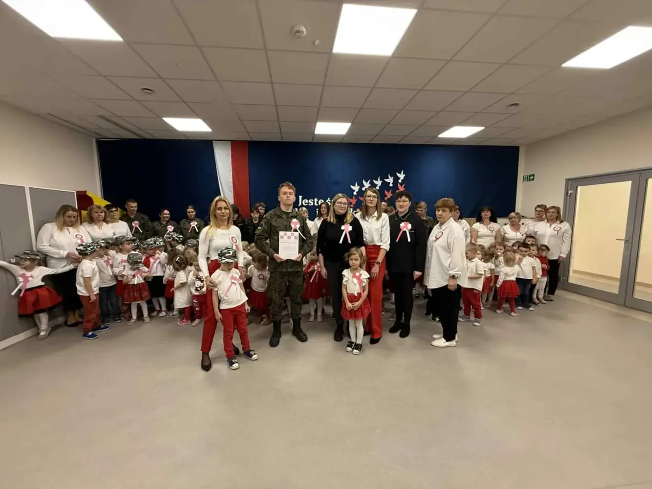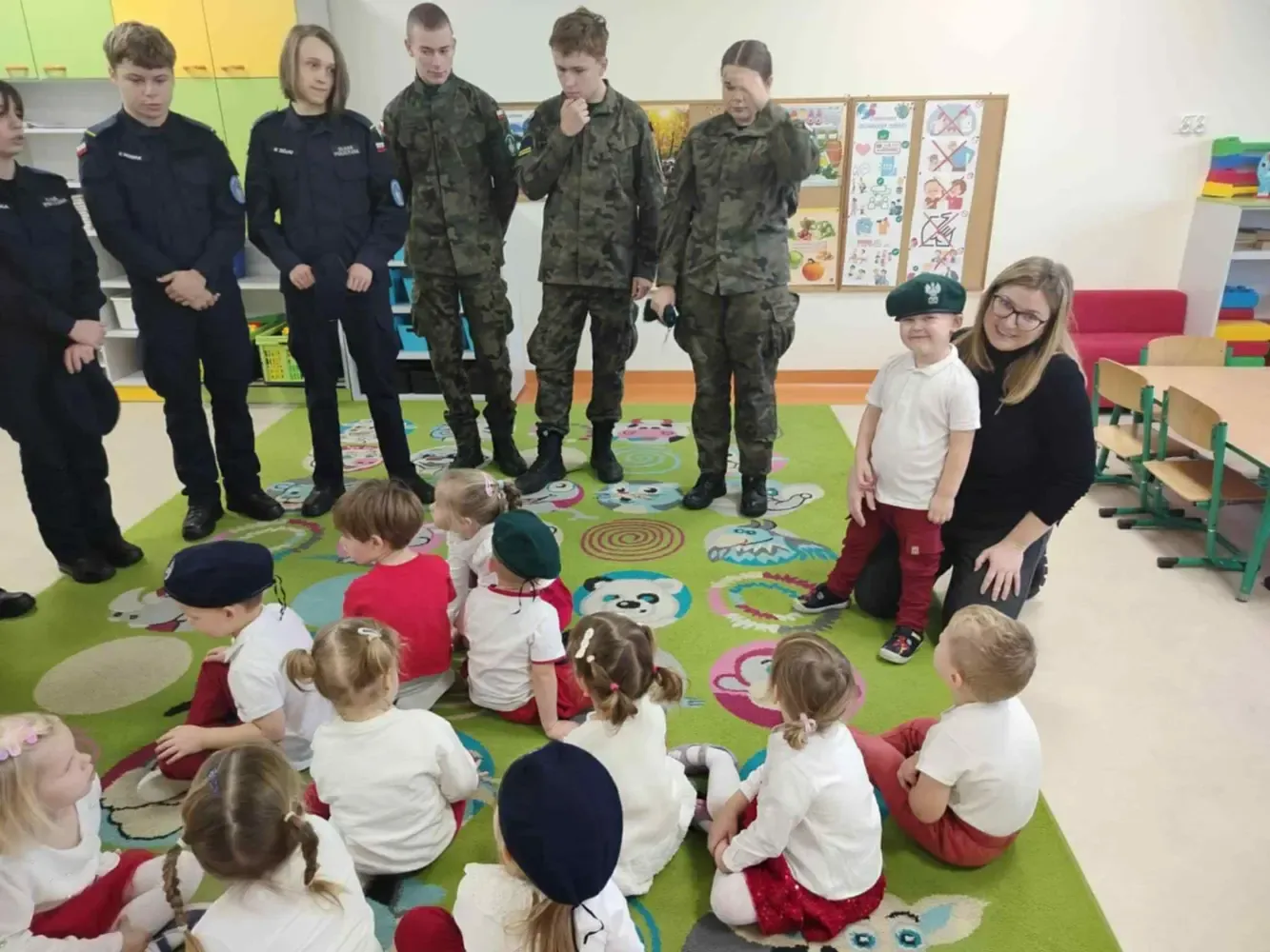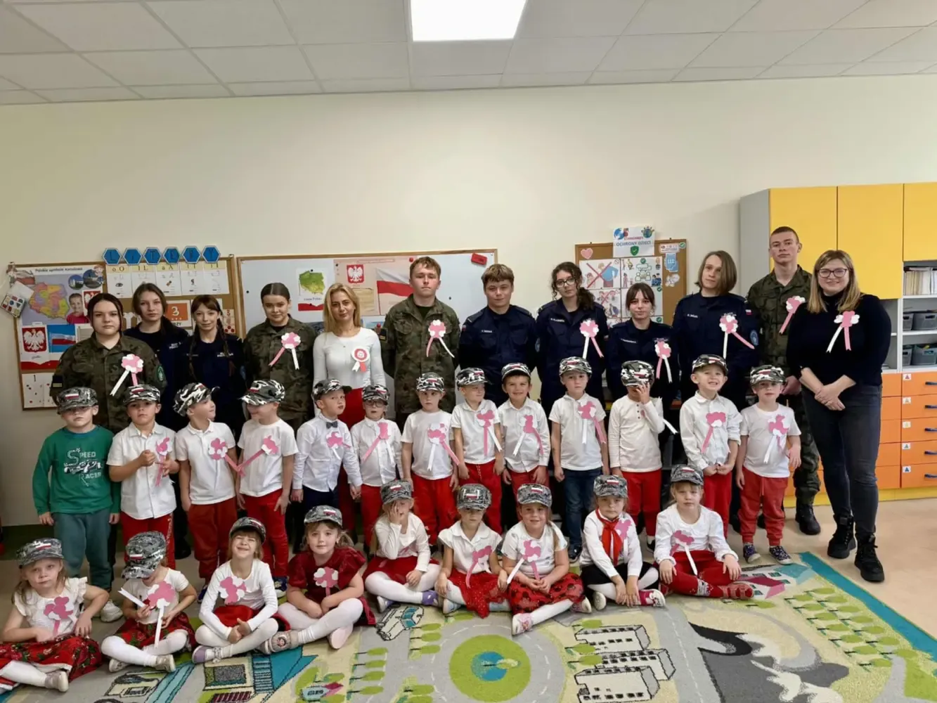 Uczniowie klas 2LOP i 2LOG włączyli się w obchody Dnia Niepodległości wspólnie z młodszymi kolegami z przedszkola. Starsi uczniowie zaprezentowali krótki pokaz musztry, a następnie razem z przedszkolakami wykonali patriotyczne kotyliony. Zwieńczeniem spotkania było wspólne odśpiewanie hymnu narodowego. Był to czas integracji, nauki i radosnego świętowania w atmosferze szacunku do historii i wartości niepodległej Polski.