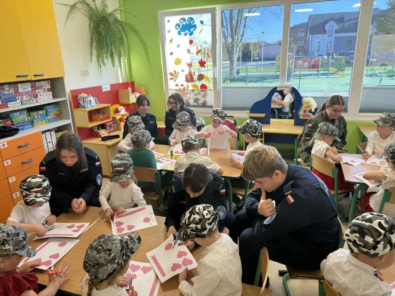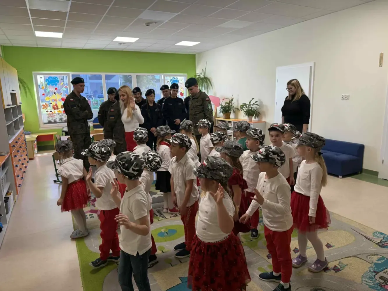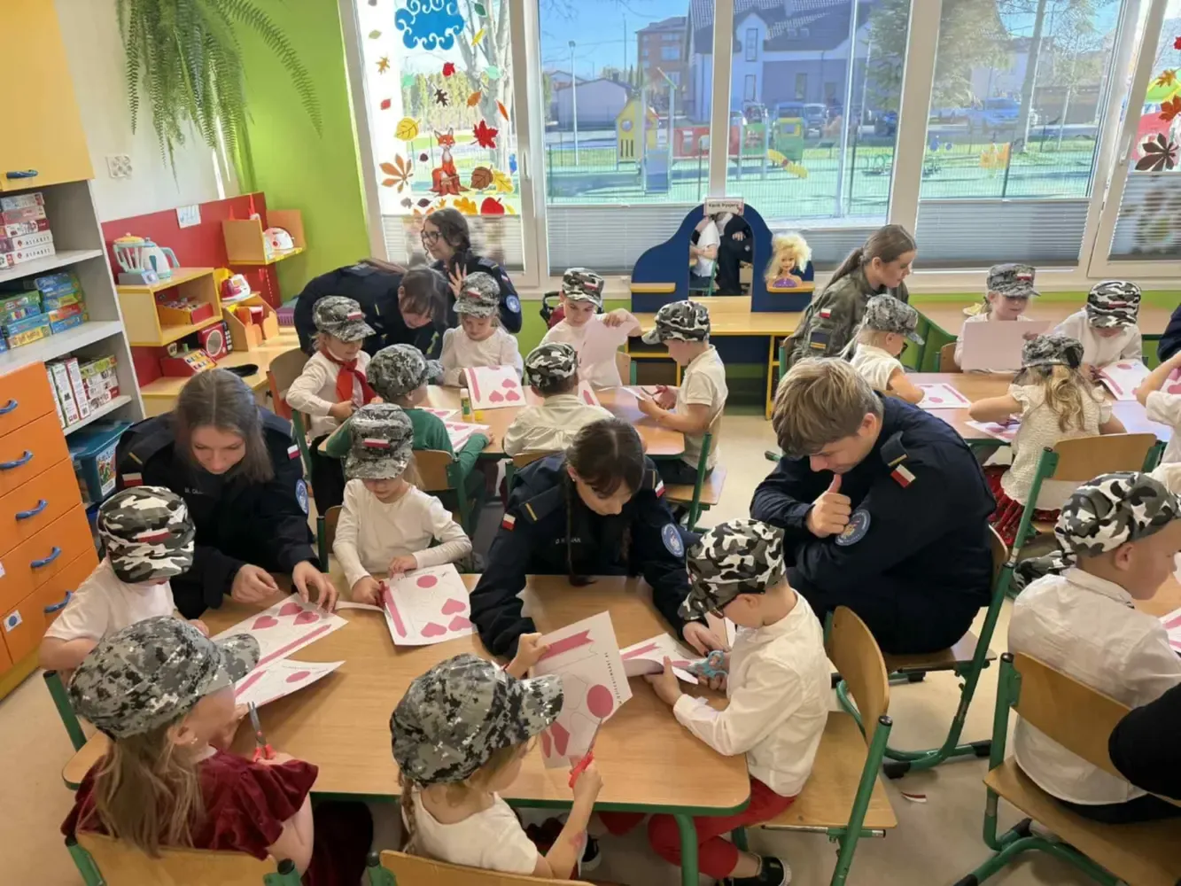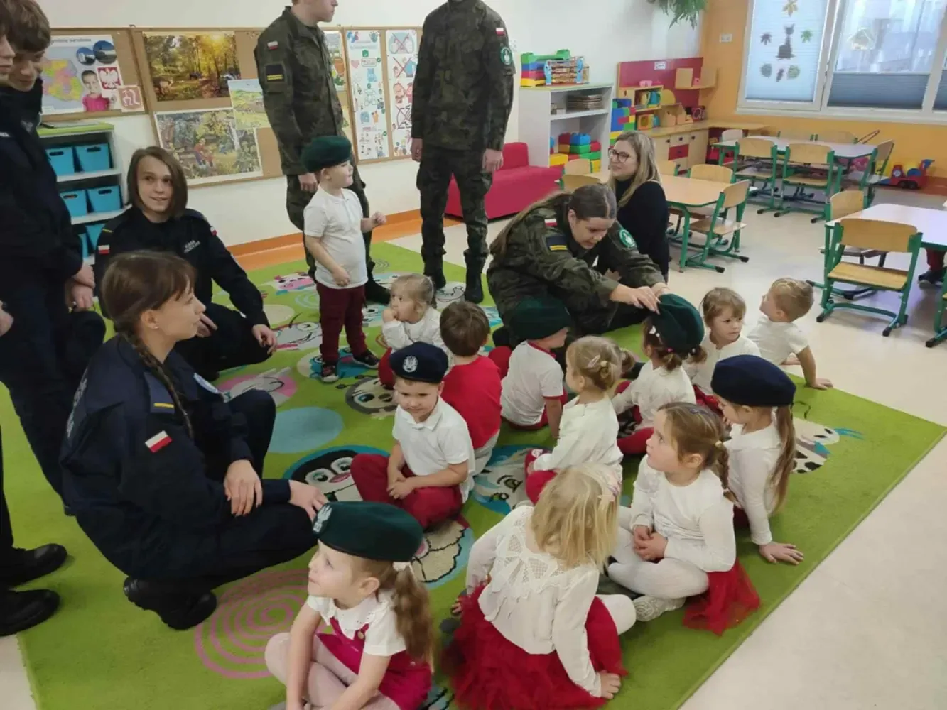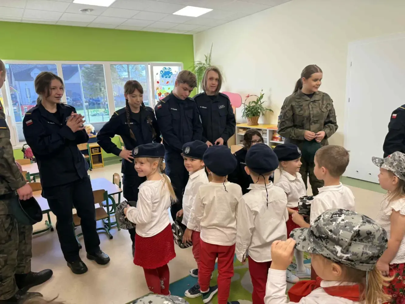 Uczniowie klas 2LOP i 2LOG włączyli się w obchody Dnia Niepodległości wspólnie z młodszymi kolegami z przedszkola. Starsi uczniowie zaprezentowali krótki pokaz musztry, a następnie razem z przedszkolakami wykonali patriotyczne kotyliony. Zwieńczeniem spotkania było wspólne odśpiewanie hymnu narodowego. Był to czas integracji, nauki i radosnego świętowania w atmosferze szacunku do historii i wartości niepodległej Polski.