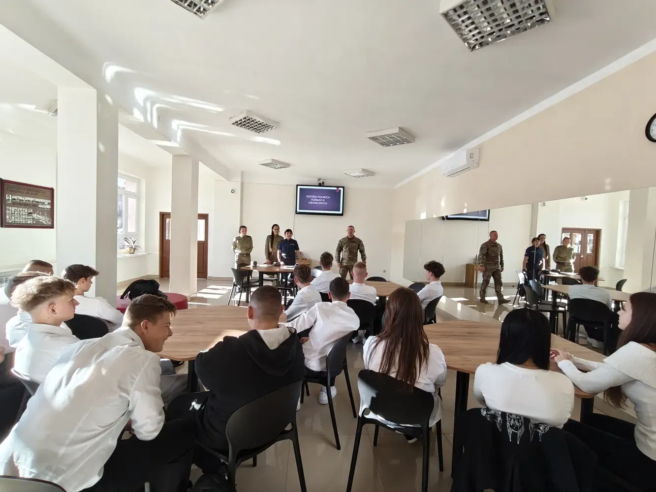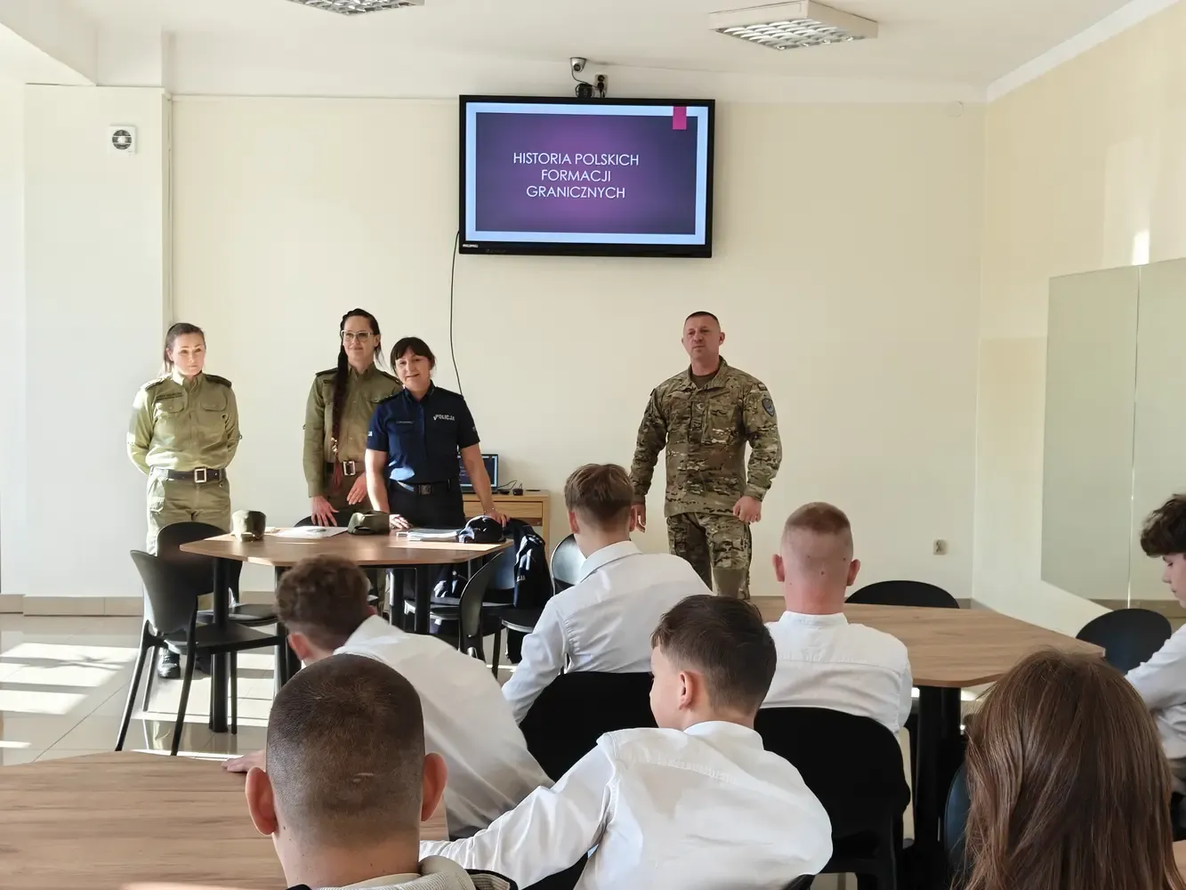 W dniu 7 listopada 2025 roku w klasie o profilu mundurowym odbyły się zajęcia poświęcone historii Straży Granicznej i Policji. Spotkanie poprowadziły funkcjonariuszki reprezentujące obie formacje: st. asp. Magdalena Nowocień i mł. chor. SG Beata Tatar , które w ciekawy i przystępny sposób przybliżyły uczniom proces kształtowania się formacji granicznych i Policji, a także ich rolę w zapewnieniu bezpieczeństwa państwa i obywateli. Funkcjonariuszki opowiedziały jak na przestrzeni lat zmieniały się struktura, zadania i wyzwania, z jakimi na co dzień mierzą się funkcjonariusze.