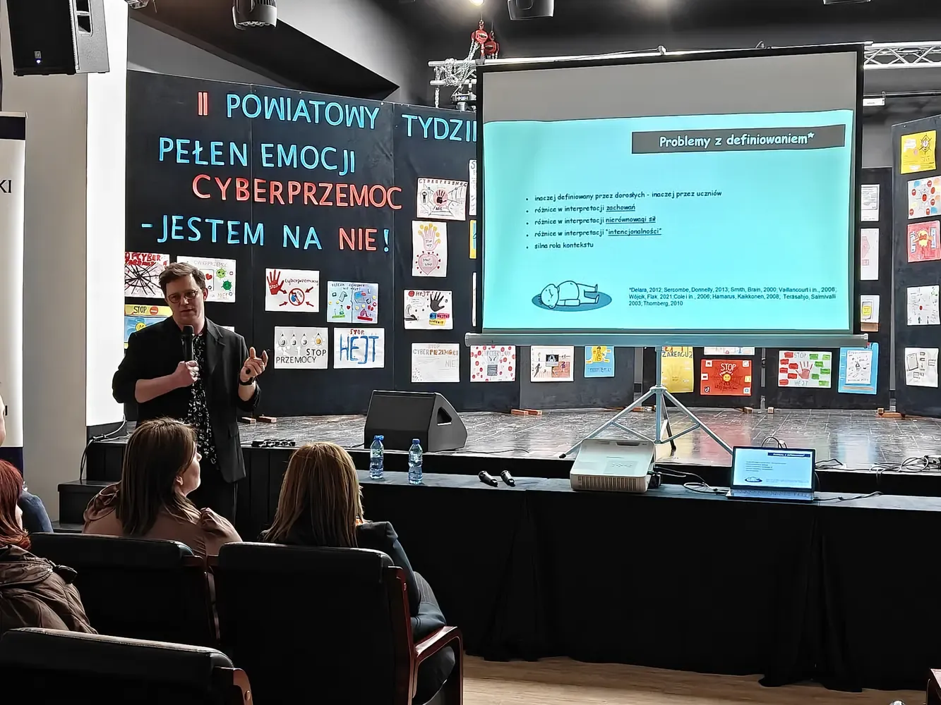 Druga część wydarzenia miała formę konferencji skierowanej do specjalistów, nauczycieli, wychowawców oraz dyrektorów szkół. Mł. asp. Kamil Warda zaprezentował temat „Szkoła, ekran, prawo – przestępstwa cyfrowe wśród uczniów” podkreślając, jak ważna jest świadomość prawna oraz szybka i adekwatna reakcja dorosłych. Z kolei Jakub Mróz, psycholog z Mazowieckiego Centrum Neuropsychiatrii omówił zagadnienie bullyingu – prześladowań rówieśniczych, wskazując mechanizmy powstawania przemocy, jej długofalowe skutki emocjonalne oraz sposoby skutecznego wsparcia uczniów.