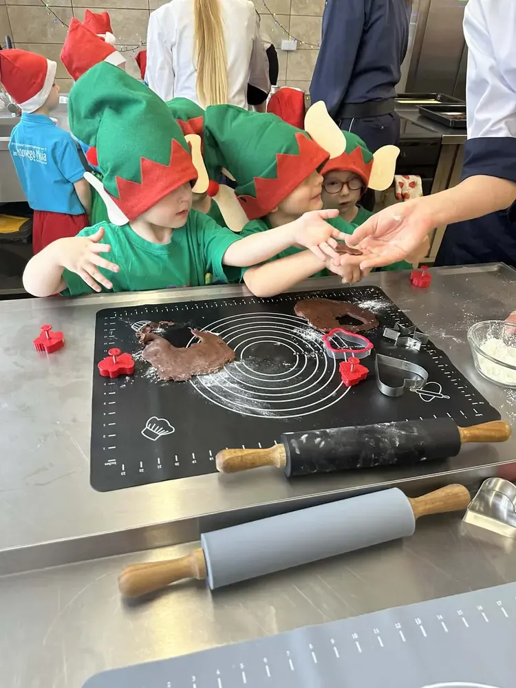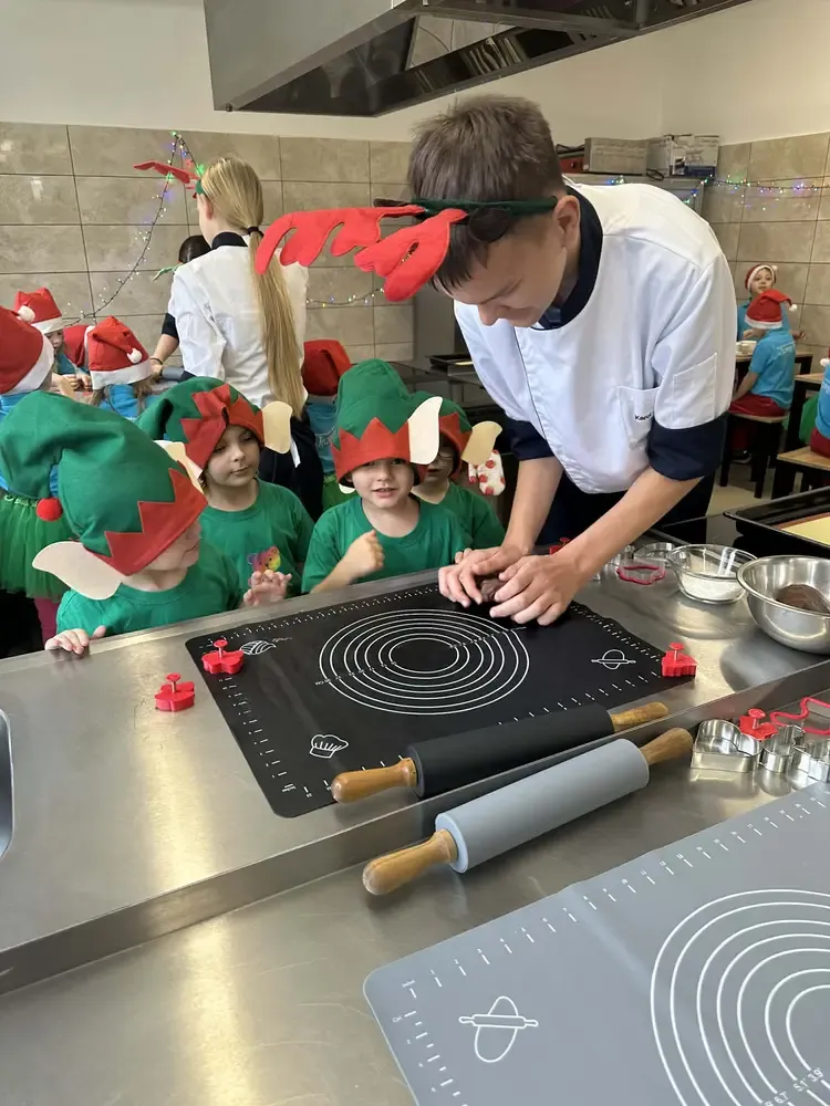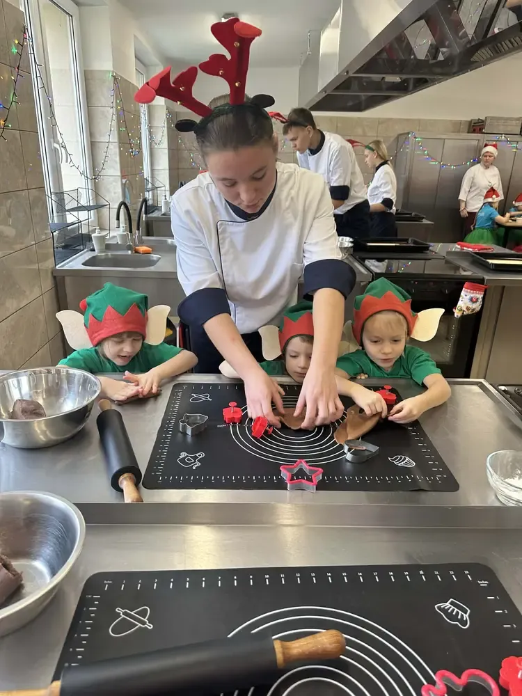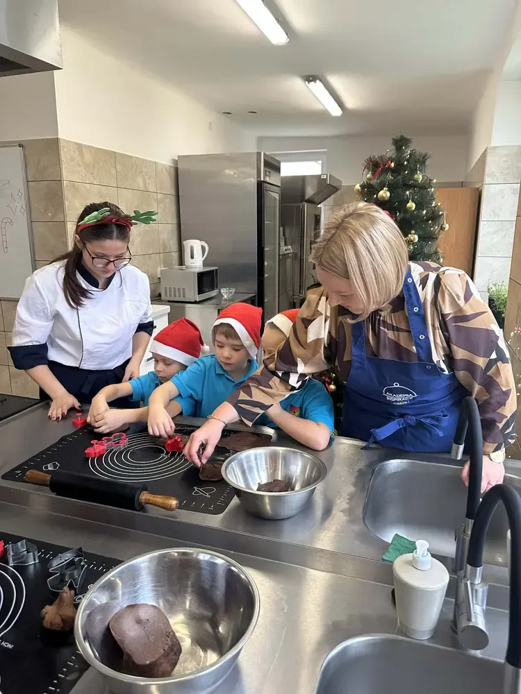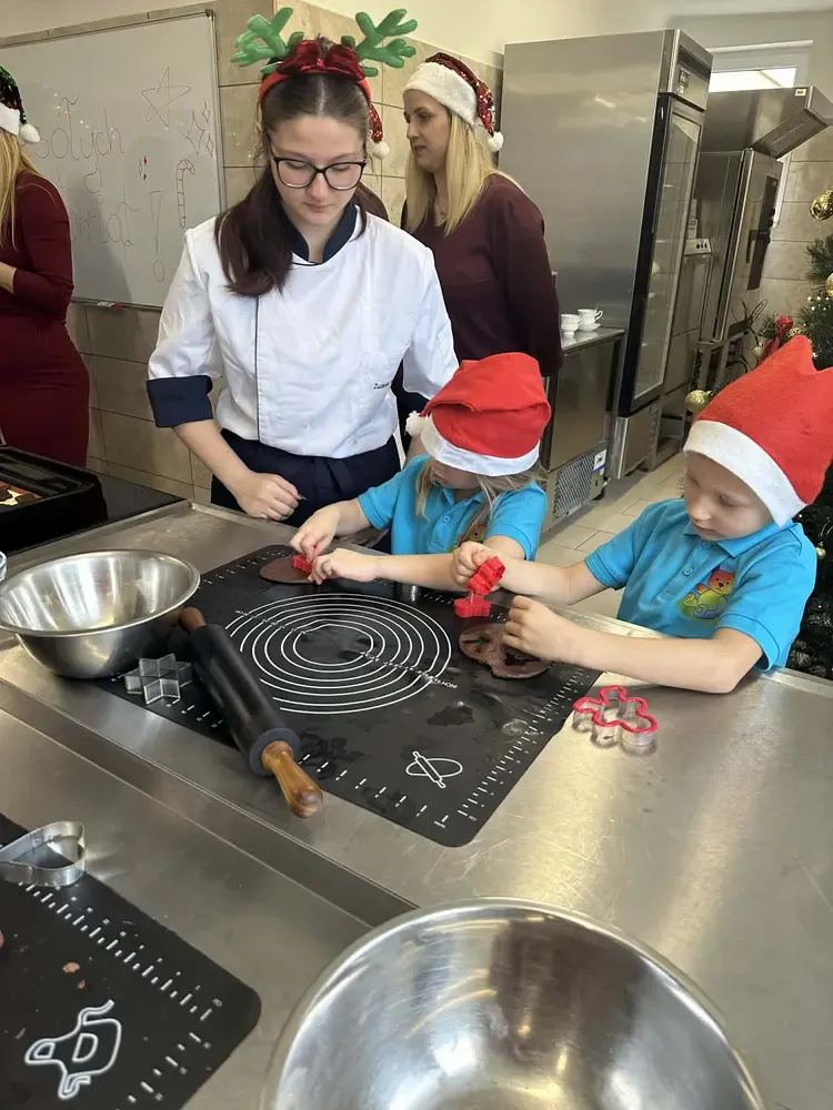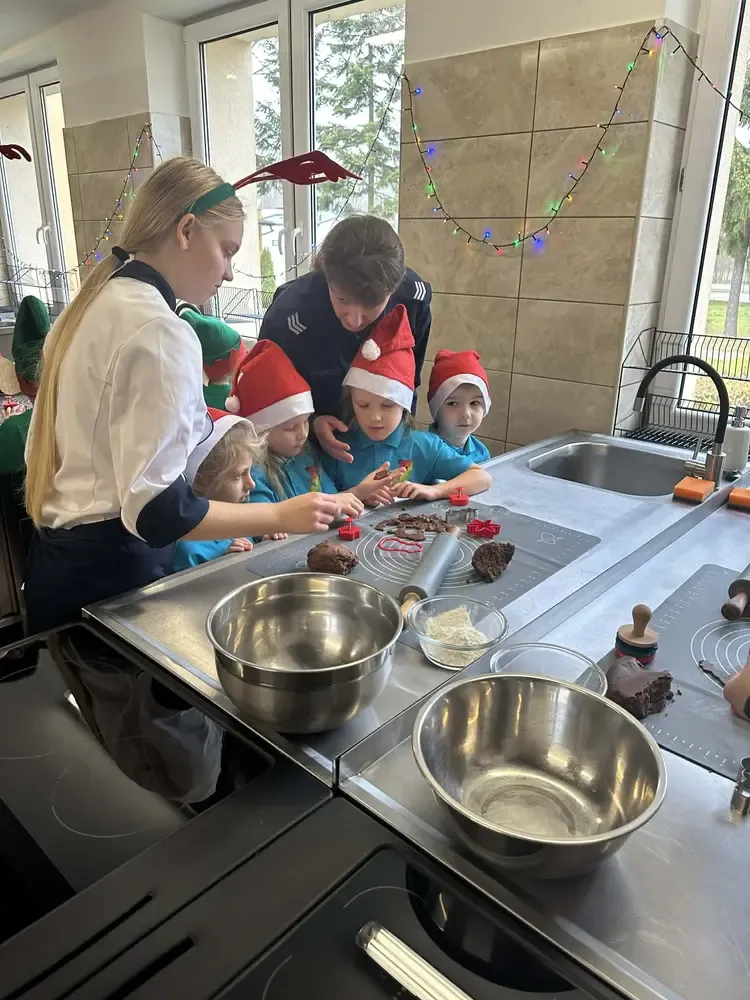 Dzieci z zapałem wałkowały ciasto, wykrawały świąteczne kształty i dekorowały pierniczki, tworząc prawdziwe małe dzieła sztuki. Atmosfera była magiczna, pełna uśmiechu, kreatywności i świątecznego ducha.