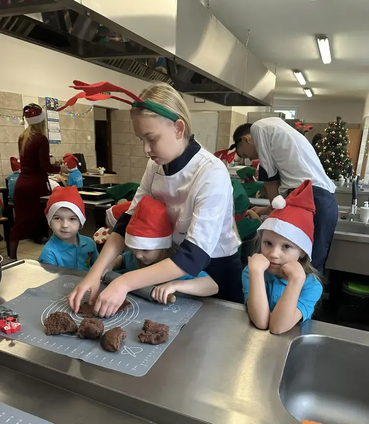 - młodzież klasy I Technikum Żywienia i Usług Gastronomicznych, która z ogromnym zaangażowaniem wspierała najmłodszych w ich kulinarnych zmaganiach.