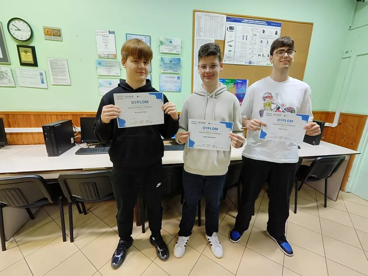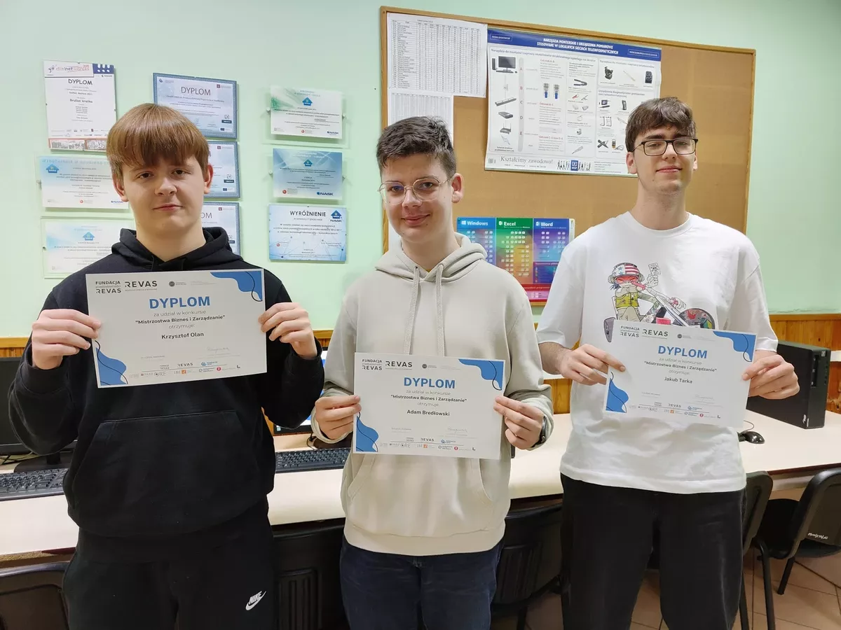 Krzysztof Olan, Jakub Tarka i Adam Bredłowski z 2 TI wzięli udział w konkursie „Mistrzostwa Biznesu i Zarządzania” zorganizowanego przez Fundację Przedsiębiorczości Revas oraz Revas sp. z o.o.. Przez dwa miesiące wcielali się w rolę właścicieli kliniki weterynaryjnej. Uczniowie zdobywali praktyczne kompetencje, korzystając z Branżowych Symulacji Biznesowych – interaktywnej metody nauczania, która łączy teorię z działaniem i rozwija kluczowe umiejętności na miarę XXI wieku.