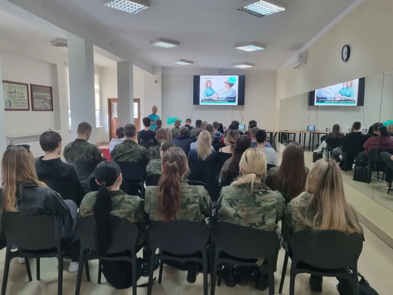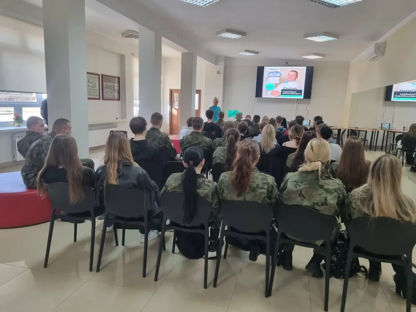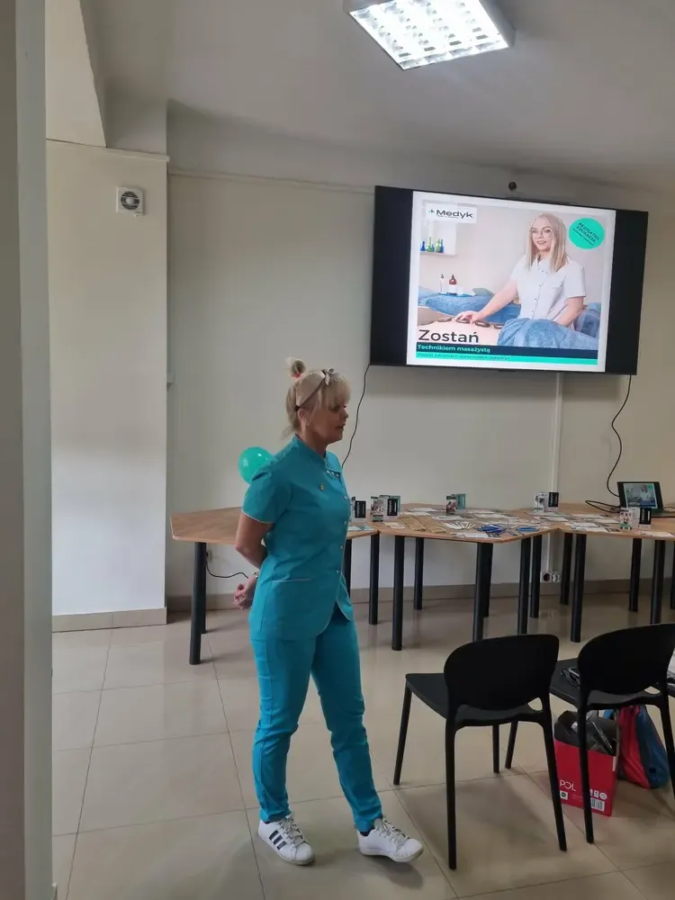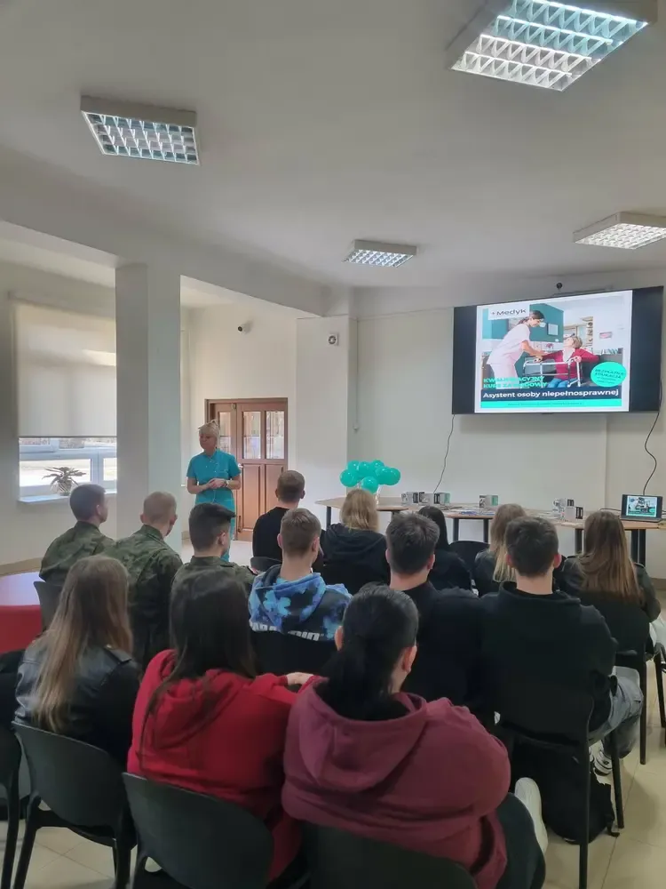 w zawodach medycznych. Podczas spotkania uczniowie mieli okazję poznać kierunki kształcenia oferowane przez szkołę, wymagania rekrutacyjne oraz specyfikę nauki na poszczególnych kierunkach. Doradca zawodowy omówiła również perspektywy zatrudnienia po ukończeniu nauki oraz możliwości dalszego rozwoju zawodowego w branży medycznej. Uczniowie dowiedzieli się, jakie umiejętności i predyspozycje są szczególnie ważne w pracy w zawodach medycznych, a także mieli możliwość zadawania pytań dotyczących nauki