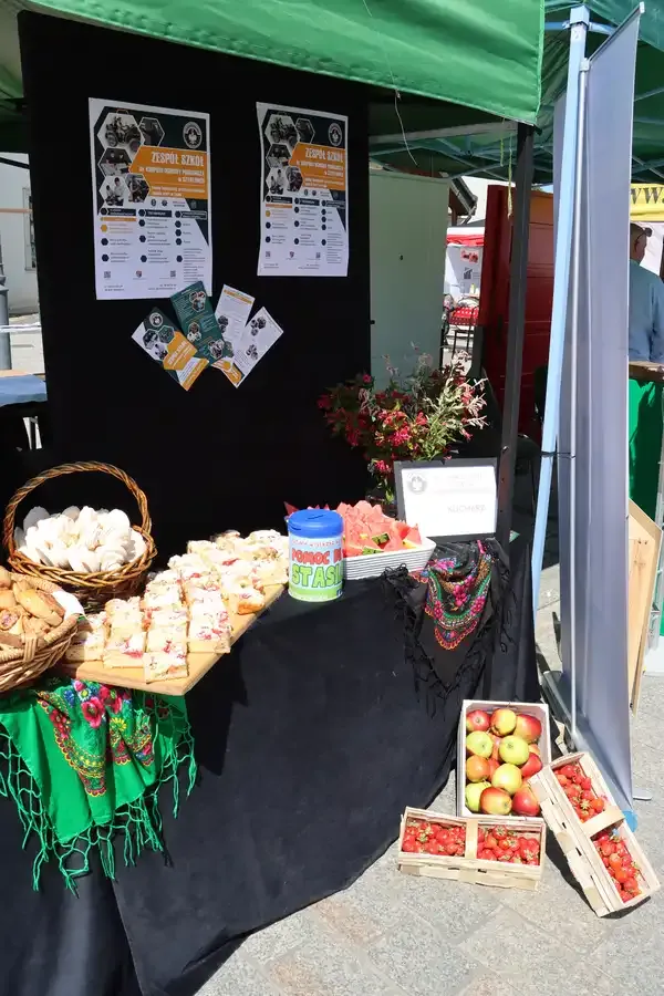 Nasze stoisko tętniło życiem – zapachy domowych pierogów, owocowych ciast, prezentacja prac fryzjerów, stolarzy, informatyków i serdeczne rozmowy przyciągały odwiedzających, którzy chętnie wspierali prowadzoną przez nas akcję charytatywną na rzecz Stasia Zielińskiego. Cały dochód ze sprzedaży przygotowanych smakołyków został przekazany na pomoc Stasiowi.