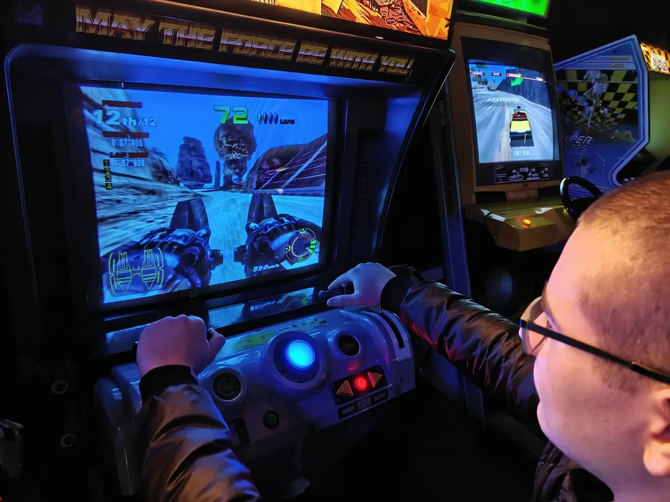 Zamiast skomplikowanych kontrolerów – wielkie przyciski i drążki. Zamiast zapisu stanu gry w chmurze – walka o „high score”, który widzieli wszyscy w salonie gier.