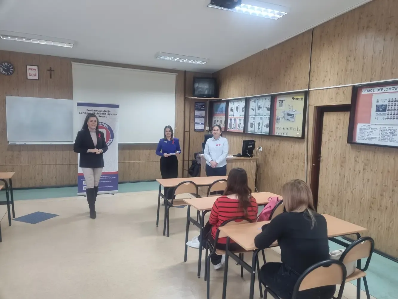 W dniu 1 grudnia 2025r. uczniowie naszej szkoły wzięli udział w Powiatowym Konkursie Wiedzy o HIV/AIDS, którego celem było poszerzenie wiedzy młodzieży na temat profilaktyki HIV, zasad bezpiecznych zachowań oraz odpowiedzialnych postaw prozdrowotnych. Uczestnicy wykazali się zarówno wiedzą jak również zaangażowaniem.