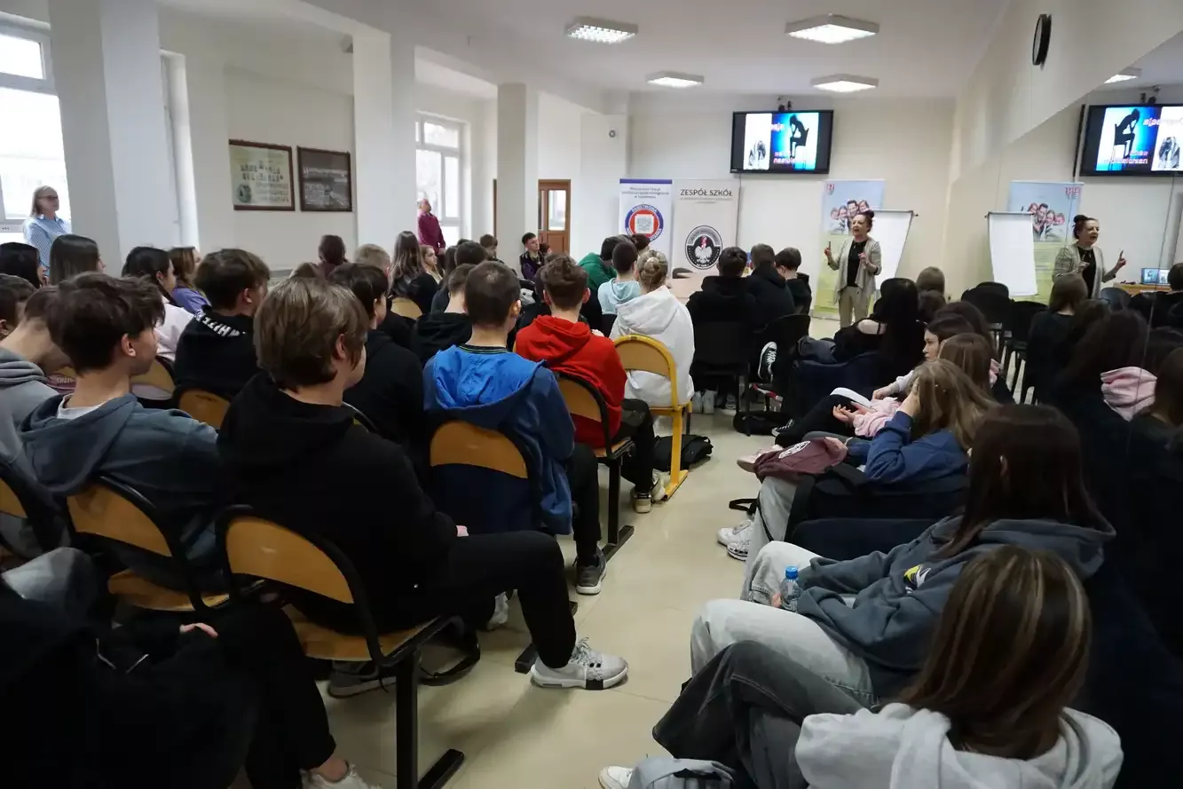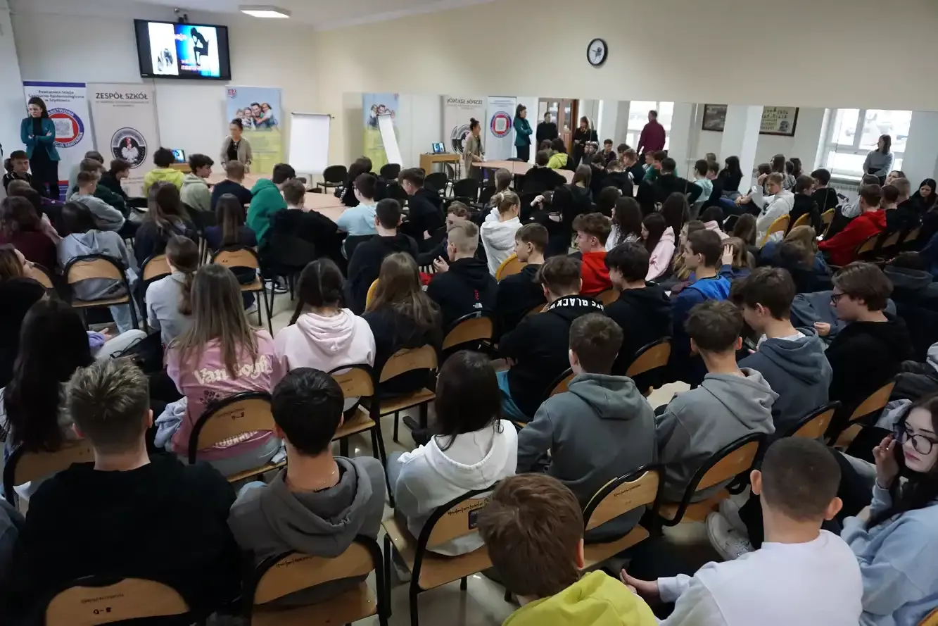 W ramach wspólnych działań odbyło się spotkanie młodzieży naszej szkoły oraz warsztaty dla uczniów CKZiU w Szydłowcu zatytułowane „Nie jesteś sam” z Laurencją Piasecką – pedagogiem resocjalizacyjnym, terapeutą, mediatorem oraz interwentem kryzysowym. Podczas spotkań młodzież miała okazję zgłębić temat zdrowia psychicznego, lepiej zrozumieć przyczyny stresu oraz odkryć skuteczne sposoby radzenia sobie z emocjami. Radość, smutek, złość, strach czy ekscytacja – wszystkie są naturalne i potrzebne. Prowadząca podkreśliła znaczenie otwartości w wyrażaniu swoich uczuć i potrzeb, a także roli wsparcia ze strony bliskich, nauczycieli oraz specjalistów w sytuacjach wymagających pomocy.