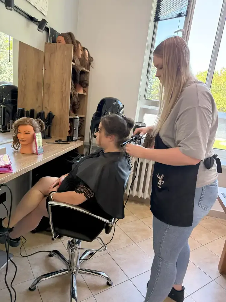 W ubiegły piątek 12.09 w pracowni fryzjerskiej naszej szkoły, uczennice klasy 3 oraz 4 Technikum Usług Fryzjerskich miały okazję doskonalić swoje umiejętności, wykonując upięcia okolicznościowe dla klientów spoza szkoły. Realizacja usług w rzeczywistych warunkach zawodowych pozwoliła przyszłym fryzjerkom sprawdzić się w bezpośrednim kontakcie z klientem, zadbać o jego potrzeby oraz wykazać się kreatywnością oraz precyzją.