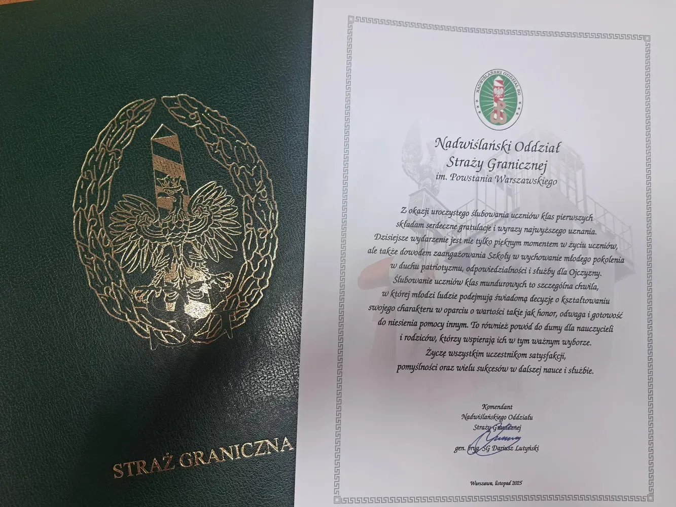 Ważnym momentem uroczystości było ślubowanie uczniów klas pierwszych, którzy w obecności społeczności szkolnej, nauczycieli, rodziców i zaproszonych gości złożyli uroczyste przyrzeczenie na sztandar szkoły. Tym samym stali się pełnoprawnymi członkami społeczności Zespołu Szkół im. Korpusu Ochrony Pogranicza. Młodzież ślubowała rzetelnie wypełniać obowiązki ucznia, godnie reprezentować szkołę, szanować jej tradycje oraz kierować się wartościami patriotyzmu i odpowiedzialności.