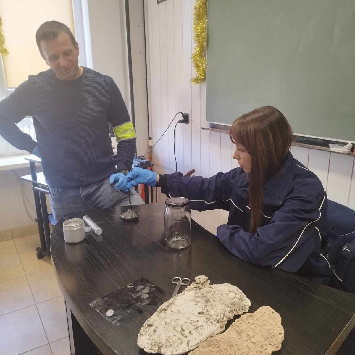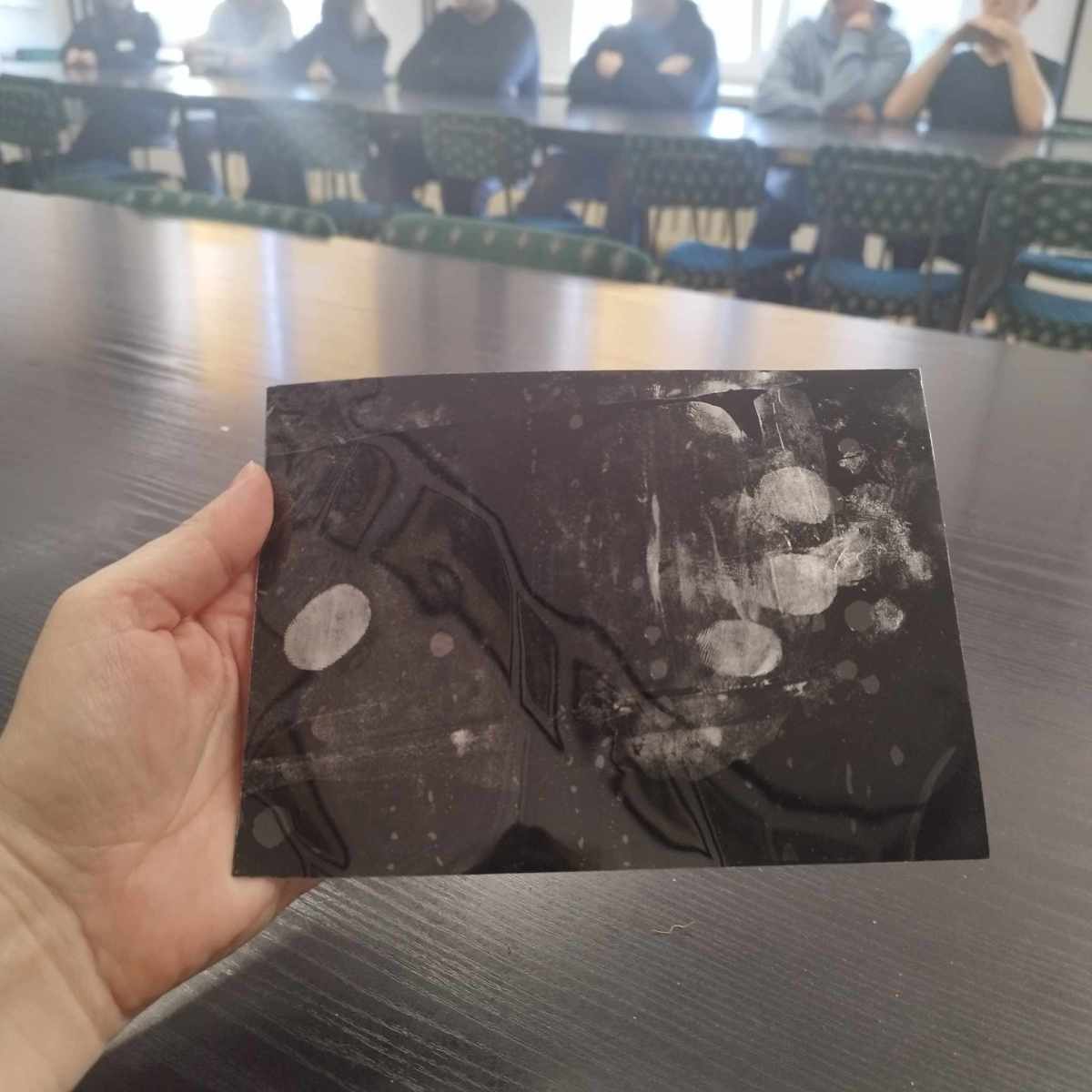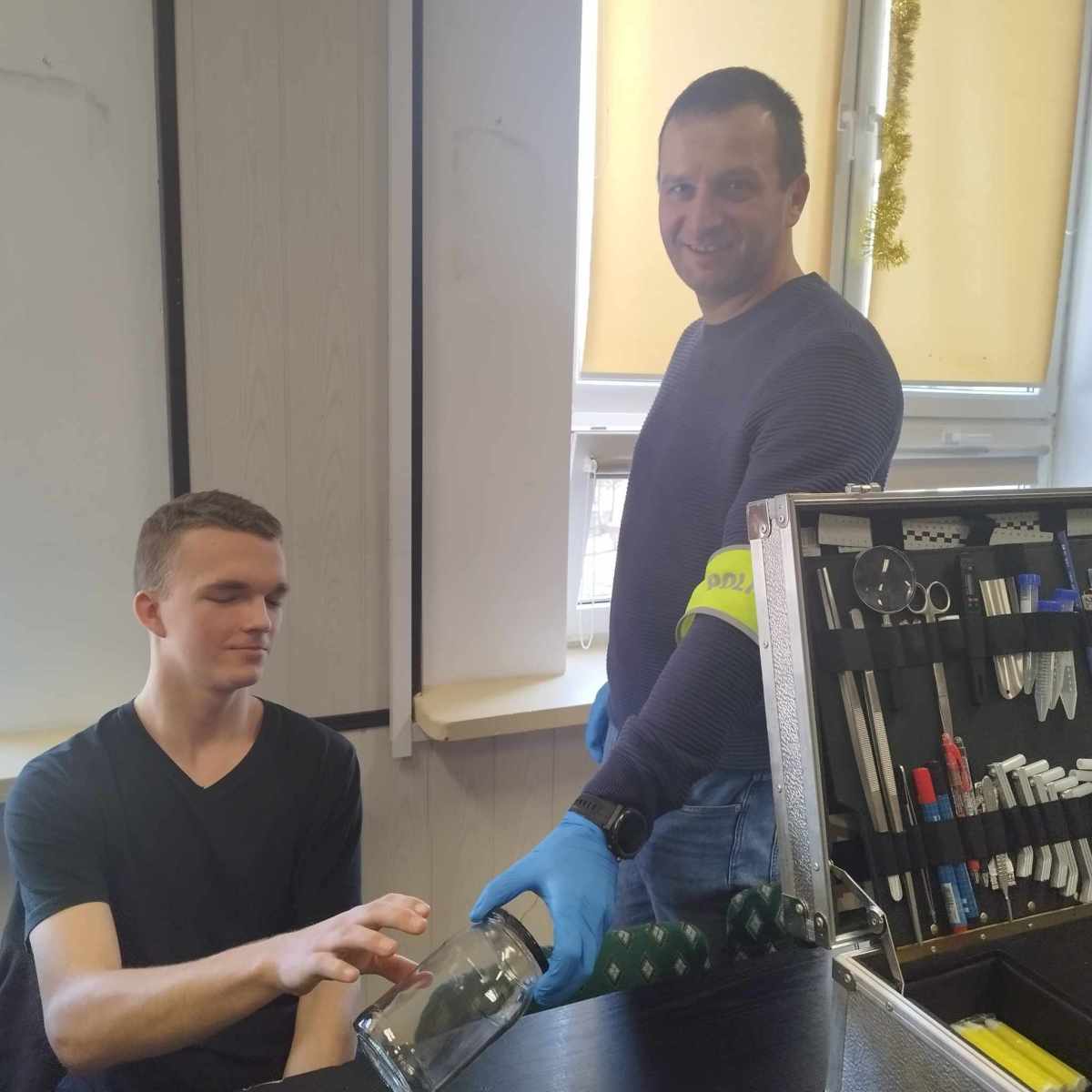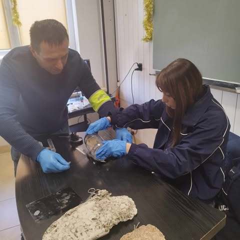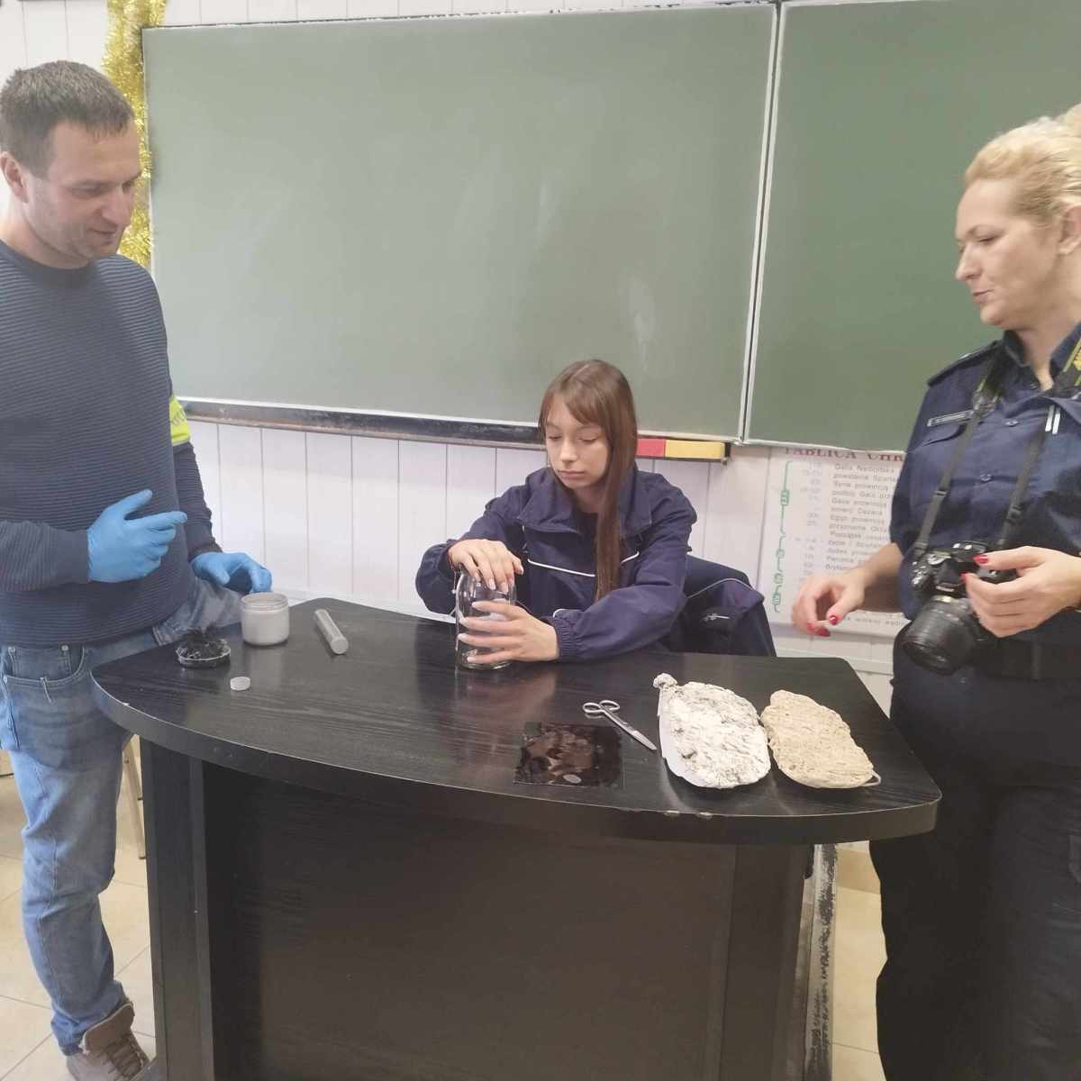 Uczestnicy mieli okazję zadawać pytania, m.in. dotyczące wyzwań w pracy kryminalistyka oraz nowoczesnych technologii wykorzystywanych w analizie śladów, a także samodzielnie zdjąć odciski palców. Spotkanie było inspirujące i ukazało, jak ważna jest naukowa dokładność w rozwiązywaniu zagadek kryminalnych.