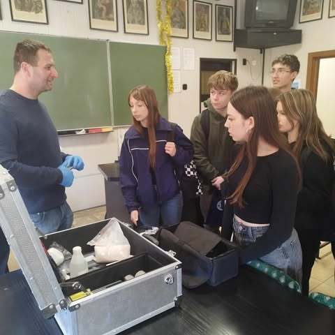 W miniony piątek odbyło się spotkanie z kryminalistykiem z Komendy Powiatowej Policji w Szydłowcu panem Maciejem Lisem – specjalistą w dziedzinie analizy śladów kryminalistycznych. Podczas spotkania omówiono specyfikę pracy kryminalistyka, w tym techniki zbierania i analizy dowodów, takie jak badanie odcisków palców, analiza DNA, ślady biologiczne czy chemiczne.