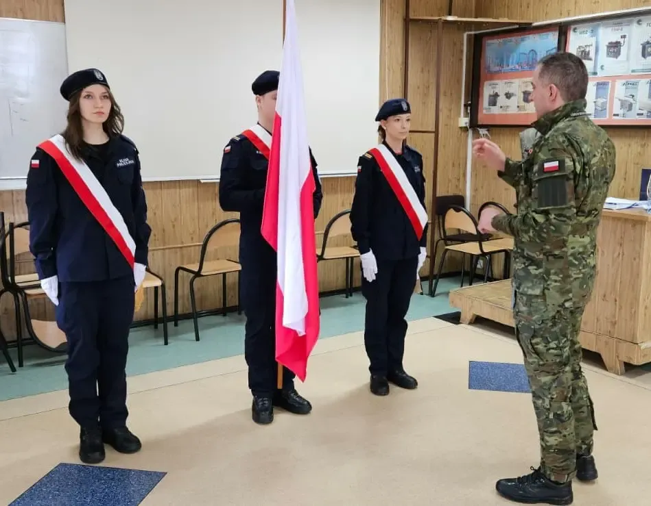 W piątek w Zespole Szkół im. KOP w Szydłowcu odbyło się specjalistyczne szkolenie dla uczniów klas mundurowych, przygotowujące ich do pełnienia zaszczytnej funkcji członków pocztu sztandarowego. Zajęcia miały na celu nie tylko doskonalenie musztry i ceremoniału, ale przede wszystkim kształtowanie postaw patriotycznych, odpowiedzialności oraz szacunku dla symboli narodowych