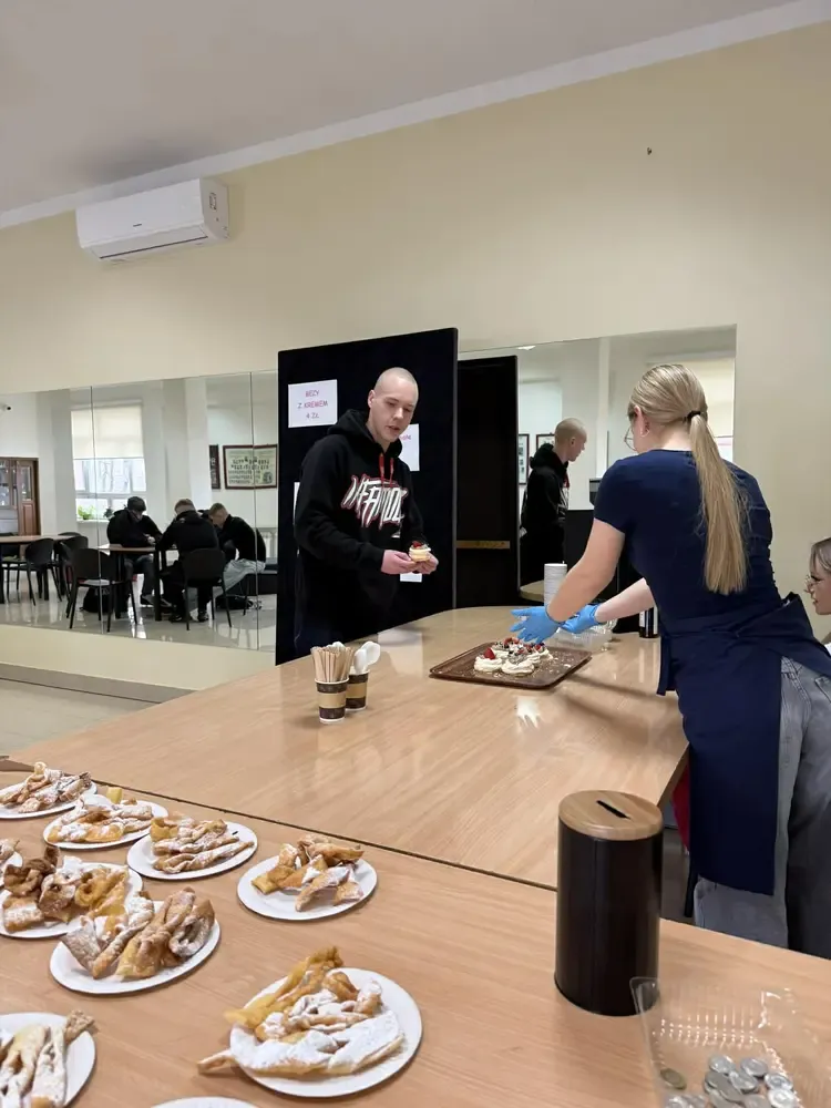 Z okazji Tłustego Czwartku Samorząd Uczniowski zorganizował pyszną sprzedaż słodkości! Można było kupić aromatyczną kawę, chrupiące faworki oraz przepyszne bezy z kremem