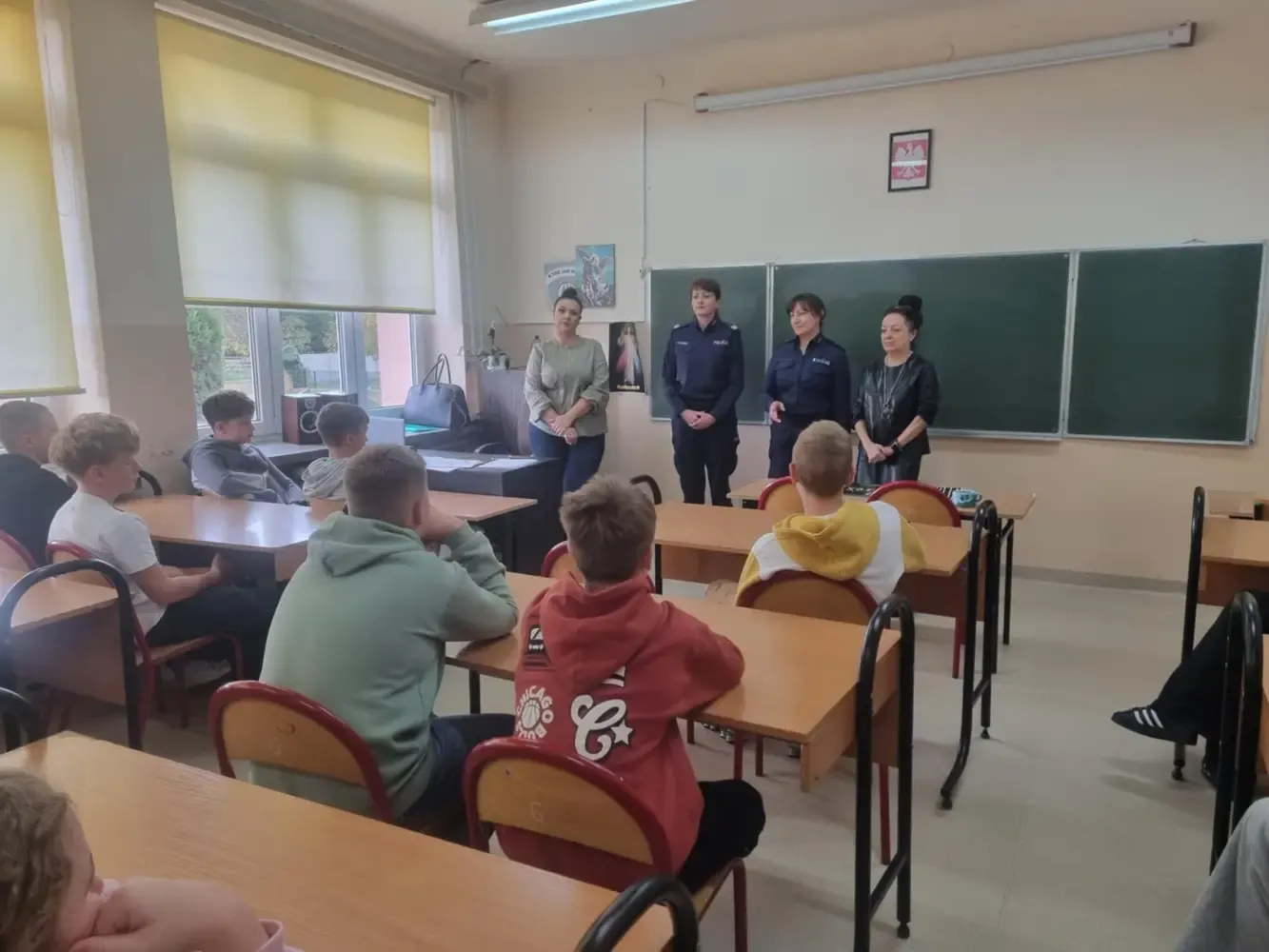 W dniu 16.10.2025 r. w Publicznej Szkole Podstawowej nr 1 z Oddziałami Integracyjnymi im. Jana III Sobieskiego w Szydłowcu, w ramach realizowanego od kilku tygodni programu profilaktyczno- edukacyjnego, pod hasłem: Warto Żyć” i „ Internetowa ulica” odbyły się warsztaty edukacyjne dla uczniów klas VII poświęcone tematyce cyberprzemocy, higieny cyfrowej oraz profilaktyki zagrożeń online. W trakcie warsztatów gościliśmy współorganizatorów działań profilaktyczno- wychowawczych Zespołu Profilaktyki Społecznej Nieletnich i Patologii Wydziału Prewencji Komendy Powiatowej Policji w Szydłowcu st.asp. Magdalenę Nowocień i sierż.szt. Kamilę Bednarczyk.