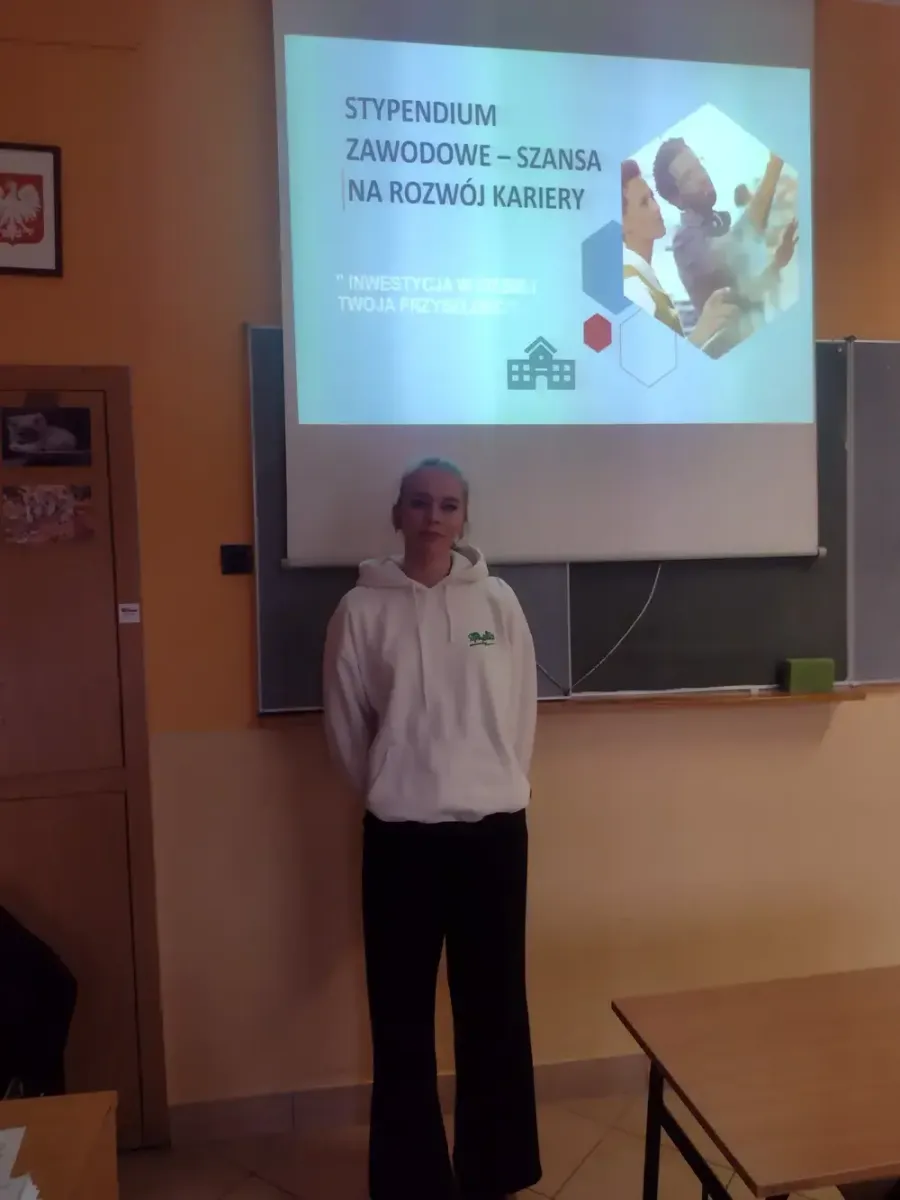 W naszej szkole gościliśmy Jagodę, absolwentkę Publicznej Szkoły Branżowej, która kształciła się w zawodzie fryzjer i została stypendystką programu dla uczniów szkół zawodowych w ramach Funduszy Europejskich dla Mazowsza 2021–2027 na rok szkolny 2024/2025.