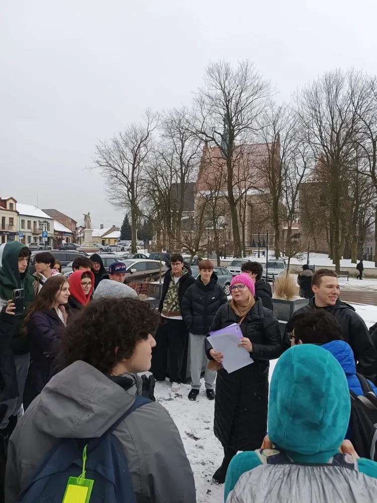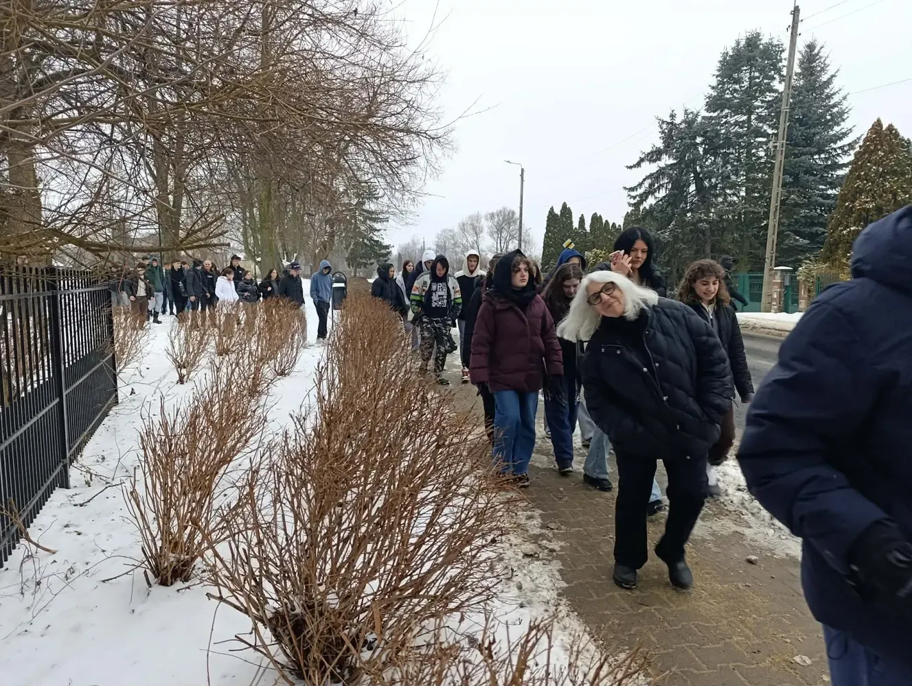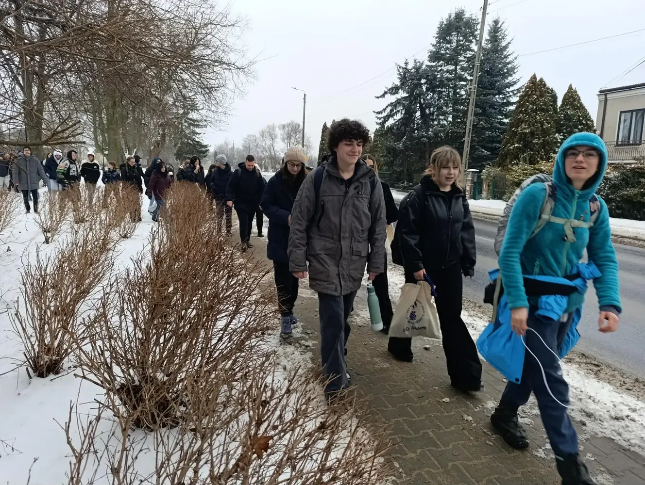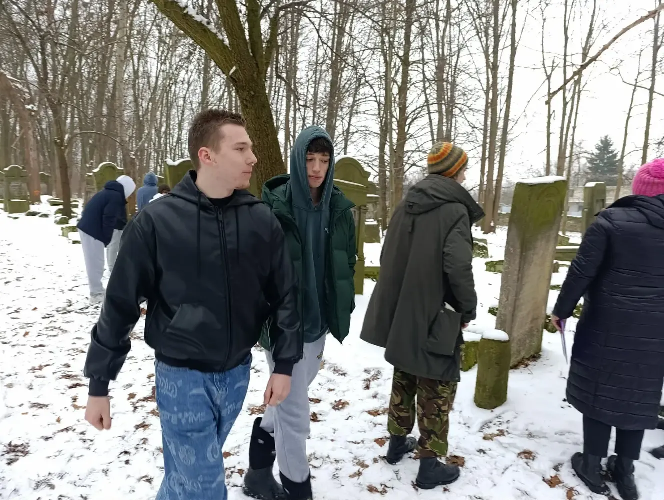 Od pierwszych chwil atmosfera była niezwykle serdeczna i otwarta – uczniowie bardzo szybko złapali ze sobą kontakt, rozmawiali, zadawali pytania i z zainteresowaniem opowiadali o swoich szkołach oraz codziennym życiu. Nasi uczniowie oprowadzili gości po szkole, następnie mimo niesprzyjającej aury wspólnie wyruszyliśmy na spacer po Szydłowcu. Odwiedziliśmy miejsca szczególnie ważne dla przedwojennej społeczności żydowskiej m.in. synagogę oraz cmentarz. Był to ważny moment refleksji oraz rozmów o wspólnej historii.