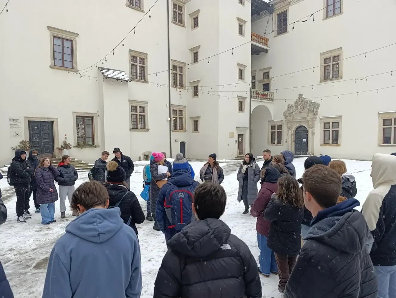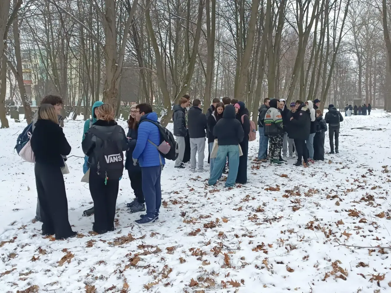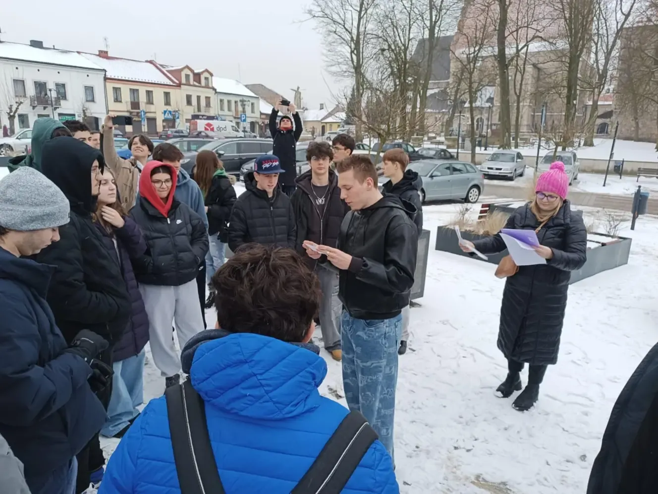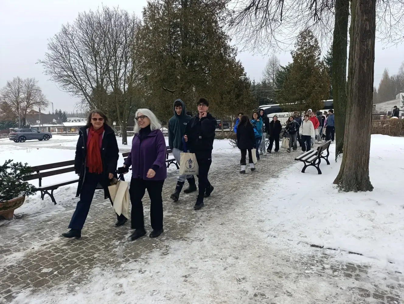 Od pierwszych chwil atmosfera była niezwykle serdeczna i otwarta – uczniowie bardzo szybko złapali ze sobą kontakt, rozmawiali, zadawali pytania i z zainteresowaniem opowiadali o swoich szkołach oraz codziennym życiu. Nasi uczniowie oprowadzili gości po szkole, następnie mimo niesprzyjającej aury wspólnie wyruszyliśmy na spacer po Szydłowcu. Odwiedziliśmy miejsca szczególnie ważne dla przedwojennej społeczności żydowskiej m.in. synagogę oraz cmentarz. Był to ważny moment refleksji oraz rozmów o wspólnej historii.