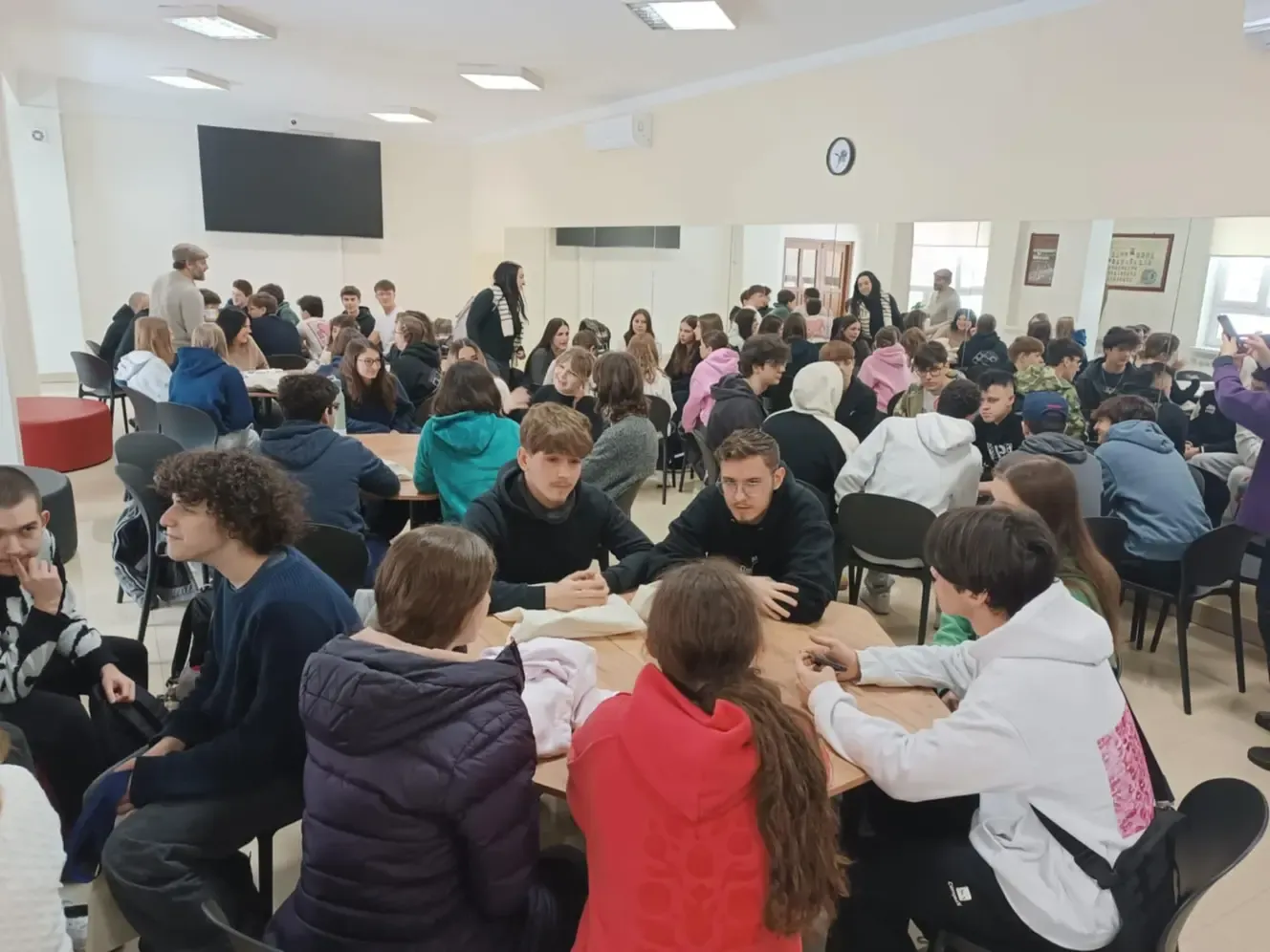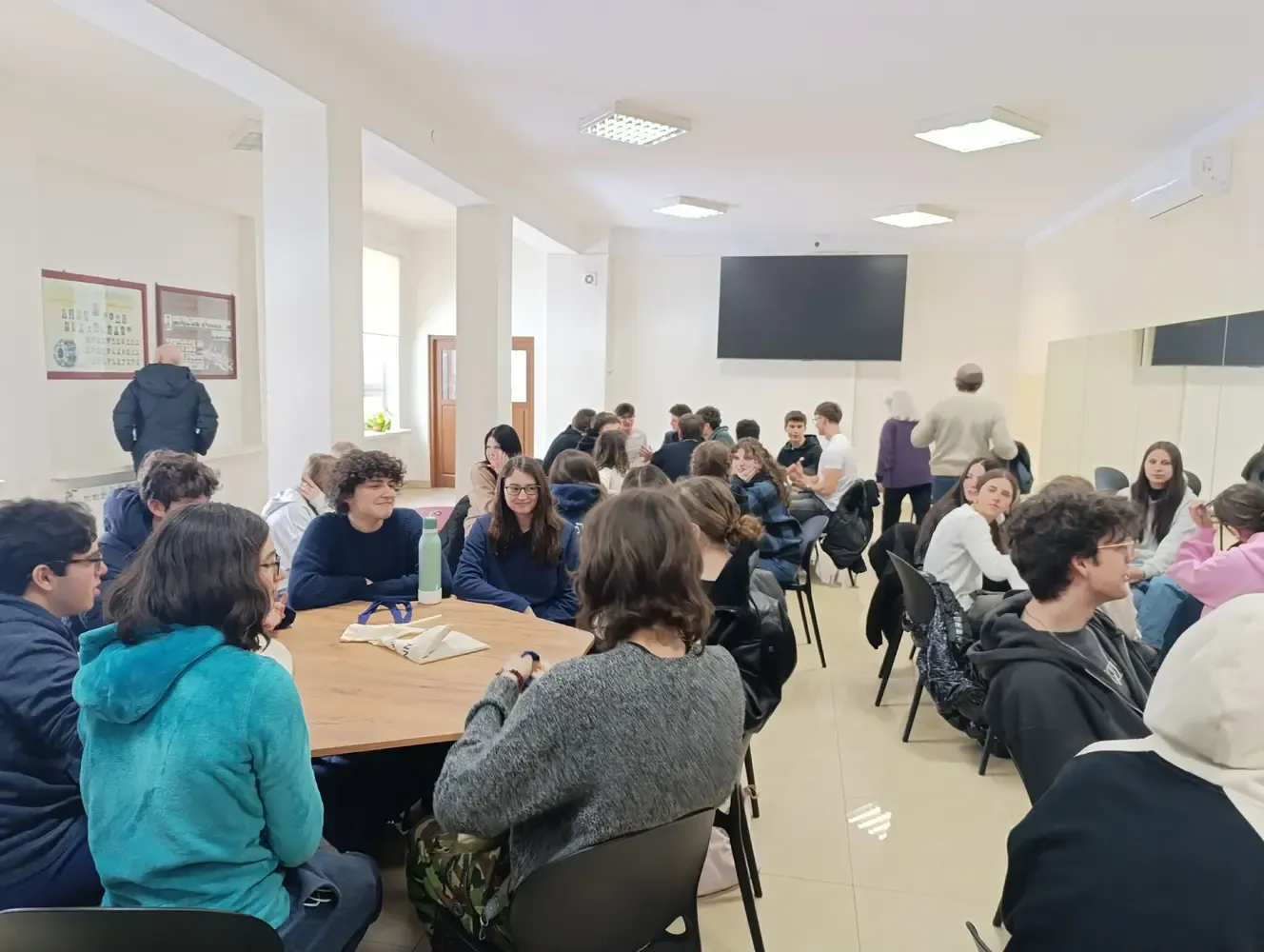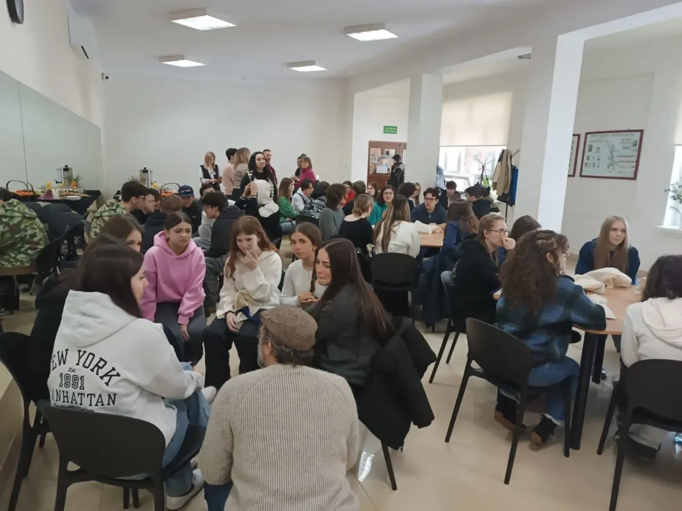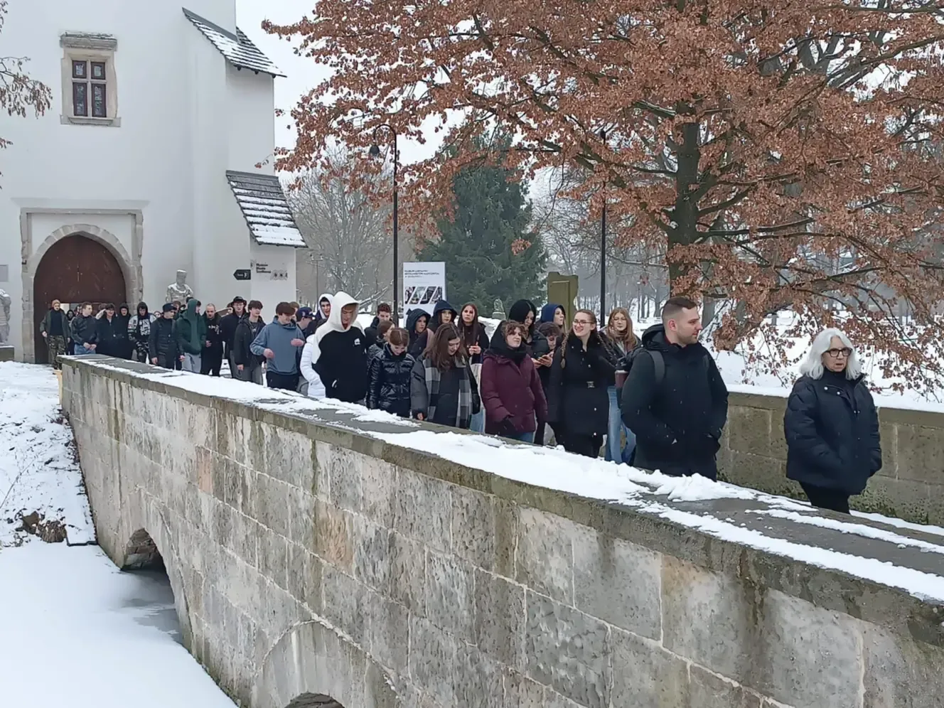 Od pierwszych chwil atmosfera była niezwykle serdeczna i otwarta – uczniowie bardzo szybko złapali ze sobą kontakt, rozmawiali, zadawali pytania i z zainteresowaniem opowiadali o swoich szkołach oraz codziennym życiu. Nasi uczniowie oprowadzili gości po szkole, następnie mimo niesprzyjającej aury wspólnie wyruszyliśmy na spacer po Szydłowcu. Odwiedziliśmy miejsca szczególnie ważne dla przedwojennej społeczności żydowskiej m.in. synagogę oraz cmentarz. Był to ważny moment refleksji oraz rozmów o wspólnej historii.