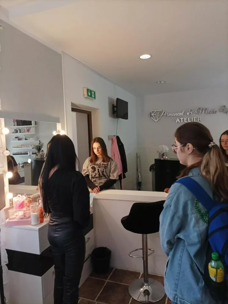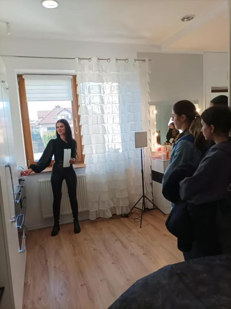 W dniu 22 października grupa uczennic z klasy 3TUF, miała przyjemność gościć w miejscu pracy pani Kariny Szewczyk – właścicielki salonu kosmetycznego Permanent & Make Up Atelier w Szydłowcu. Pani Karina opowiedziała dziewczynom o specyfice funkcjonowania swojego salonu. Uczennice poznały kosmetyki i akcesoria wykorzystywane podczas wykonywania makijażu permanentnego i okolicznościowego, oraz preparaty i przybory używane do stylizacji paznokci i pielęgnacji dłoni. Pani Karina zaprezentowała też dziewczynom autoklaw – urządzenie do sterylizacji narzędzi i przyborów kosmetycznych jak i narzędzi fryzjerskich.