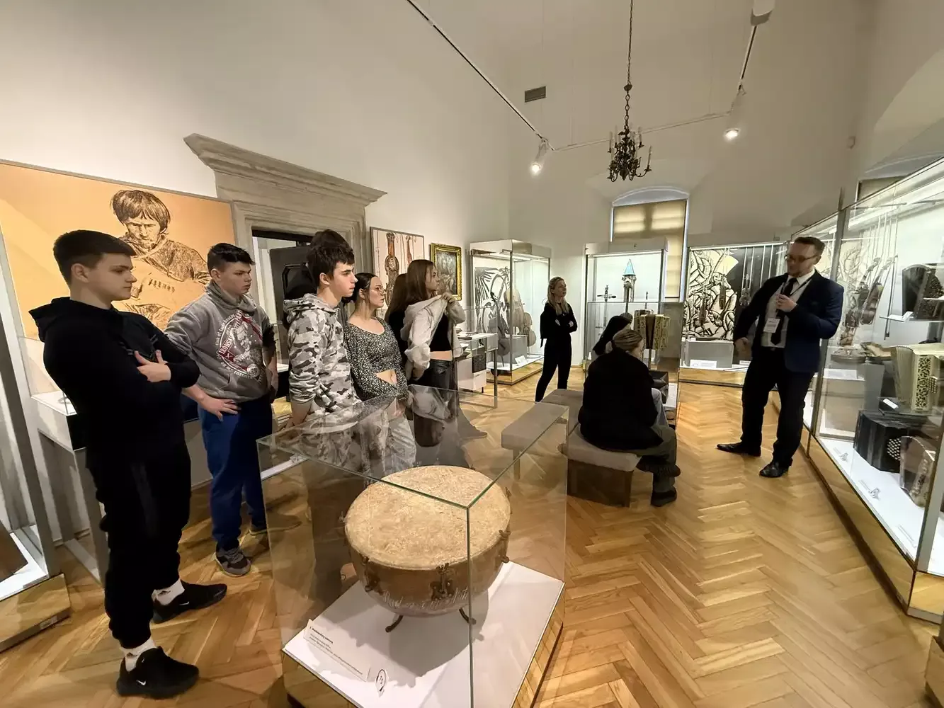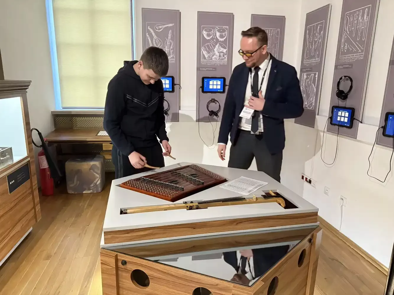 Zwiedzanie umilił nam pan przewodnik, który w bardzo interesujący sposób przybliżył historię oraz działanie instrumentów. Młodzież miała również okazję spróbować swoich sił w grze na niektórych