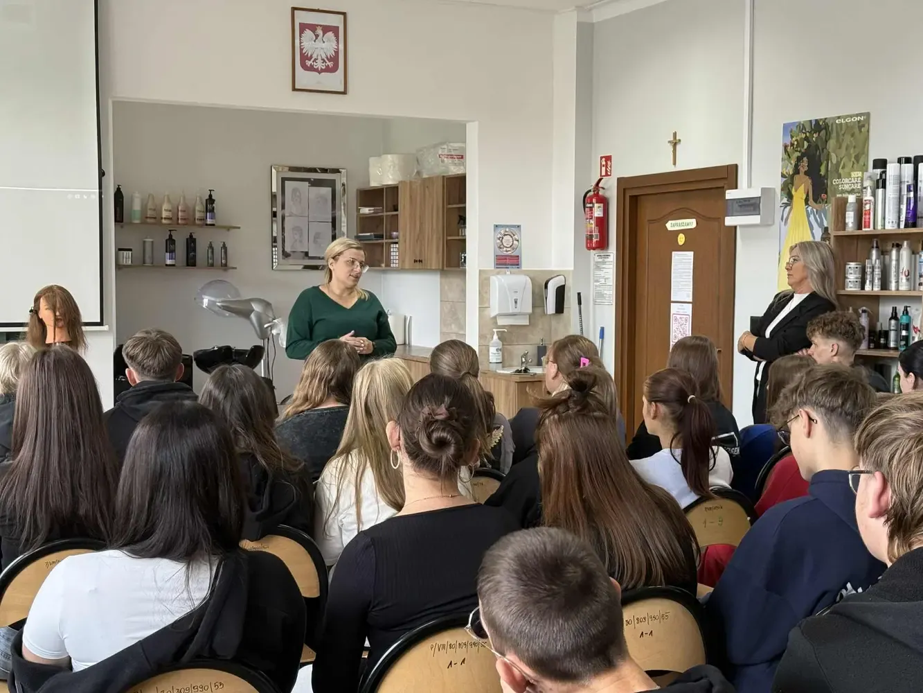 Dziękujemy wszystkim za obecność i zaangażowanie – szczególnie naszym uczennicom – Mai Sasin i Julii Wójcik oraz nauczycielom fryzjerstwa – Annie Podlewskiej i Edycie Sochackiej za pomoc w zorganizowaniu spotkania.