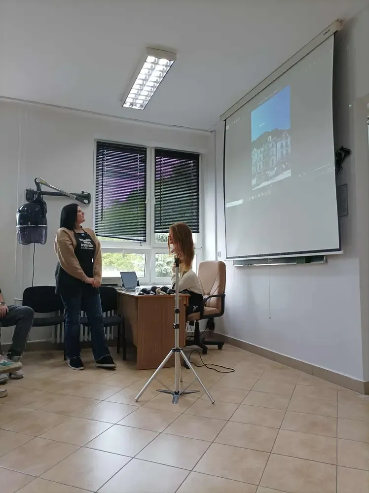 Maja Sasin i Julia Wójcik opowiadały o codziennej pracy w portugalskim salonie fryzjerskim, zaprezentowały zdjęcia z praktyk oraz podzieliły się tym, czego nauczyły się zarówno w zakresie umiejętności zawodowych, jak i kultury pracy w innym kraju. Podkreśliły, jak cenne było to doświadczenie – nie tylko zawodowo, ale również życiowo.