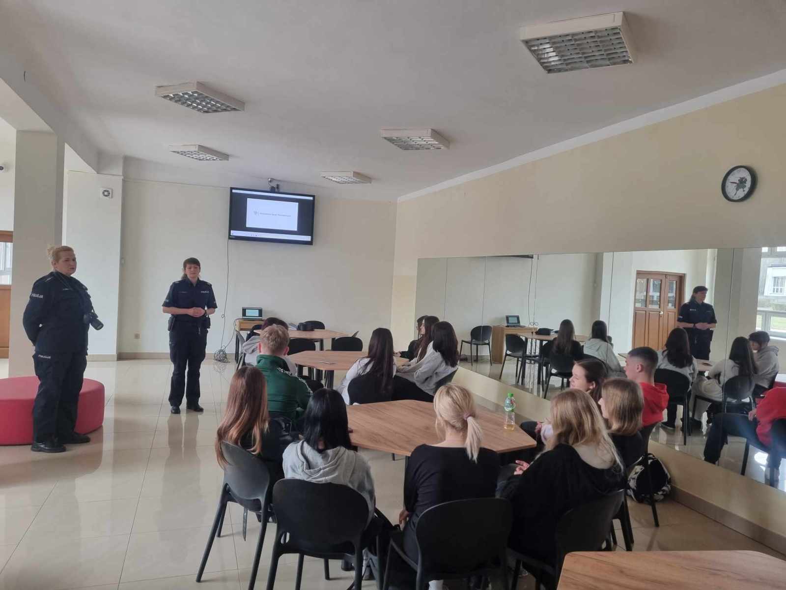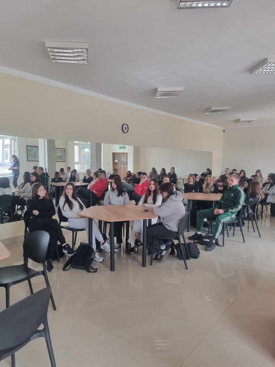 W dniu 28 marca 2025r. funkcjonariuszki Komendy Powiatowej Policji w Szydłowcu przeprowadziły dla uczniów klas III LOP, III LOog pogadankę na temat cyberzagrożeń. Przybliżyły również zagadnienia handlu ludźmi. Spotkanie miało charakter prewencyjny i z pewnością przyczyni się do wzbogacenia wiedzy młodych ludzi na temat zagrożeń, z którymi mogą się spotkać. Policjantki zachęcały młodzież do wstąpienia w szeregi formacji omawiając zasady przyjęć do Policji.