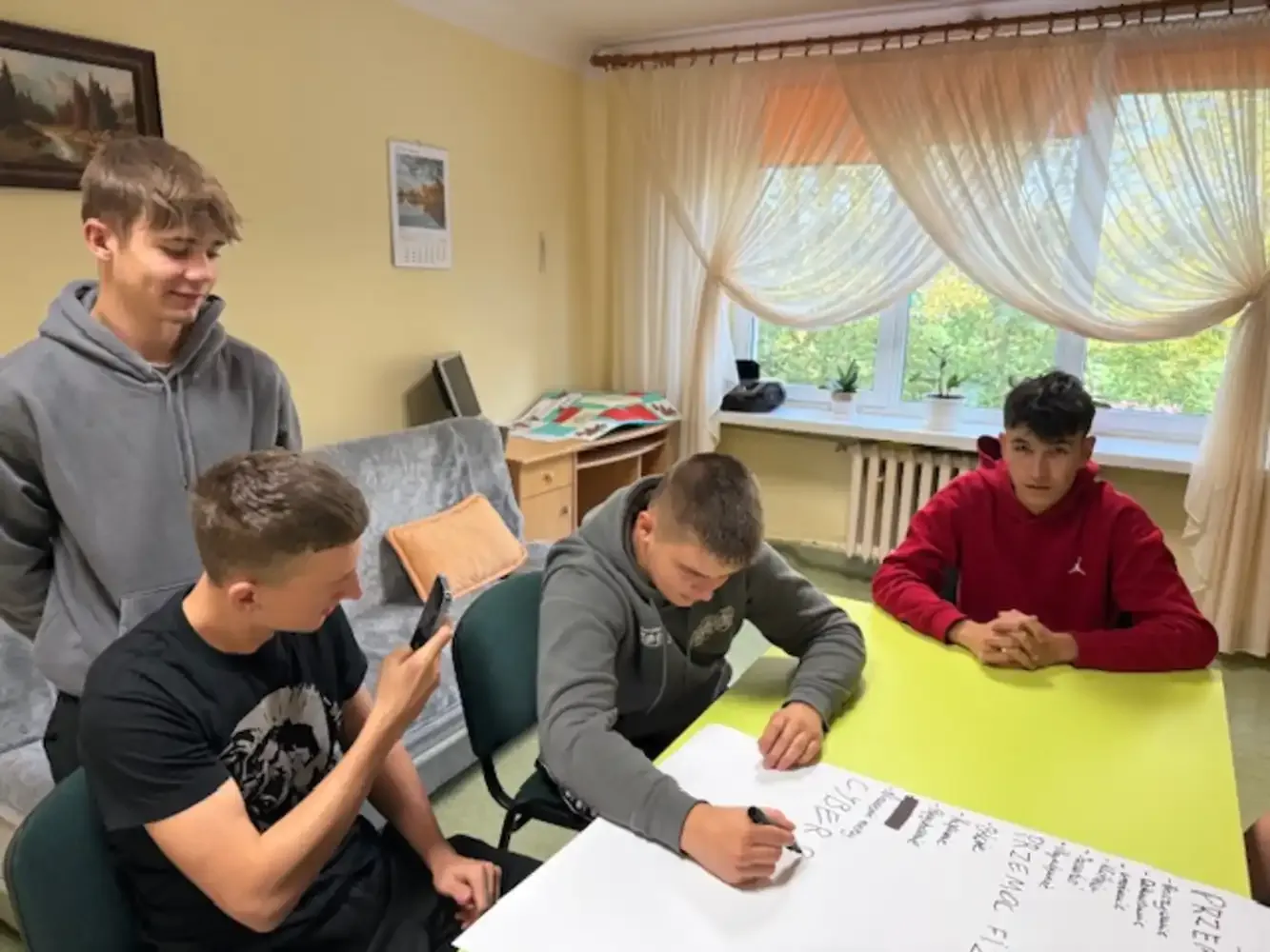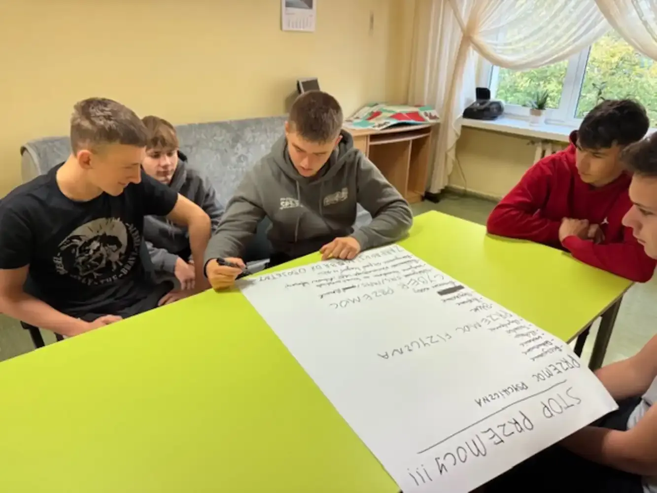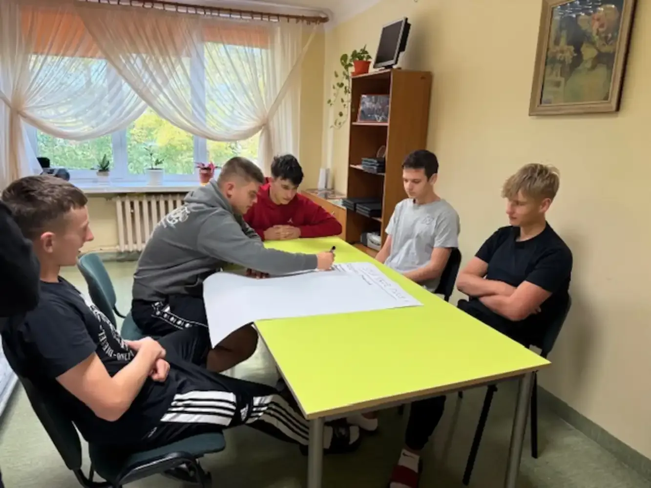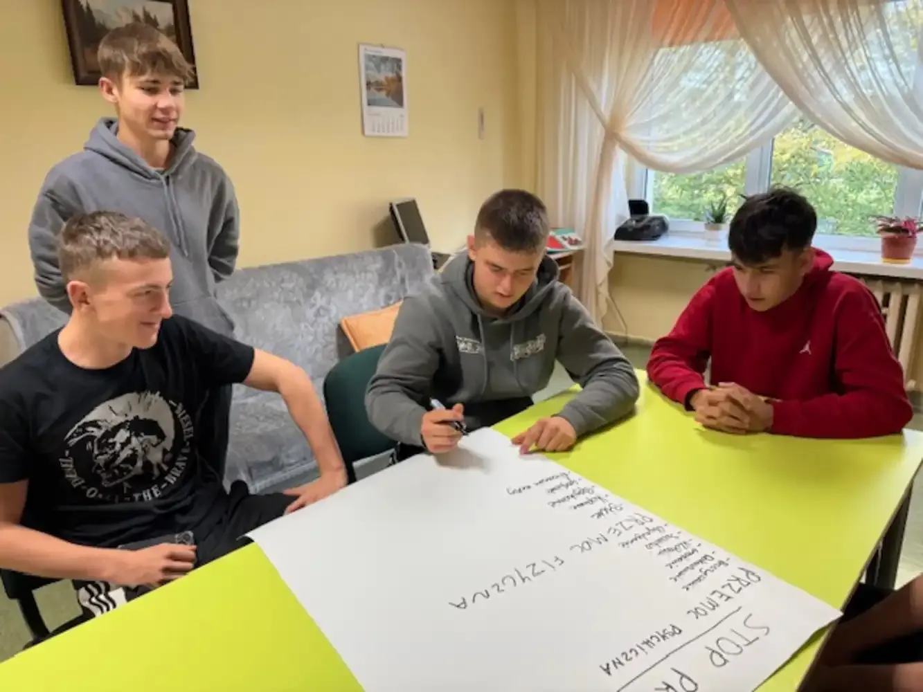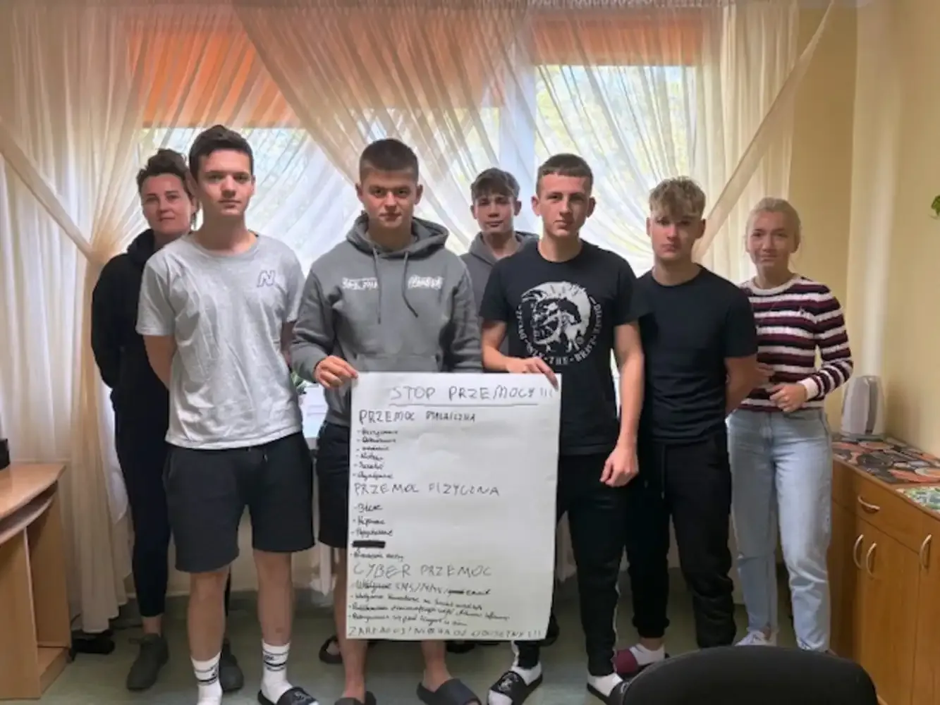 Dnia 02.10.2025 r. w Internacie zostały przeprowadzone zajęcia profilaktyczne na temat przemocy rówieśniczej miały. Miały one na celu zwiększenie świadomości wychowanków w zakresie rozpoznawania różnych form agresji, takich jak przemoc fizyczna, psychiczna, werbalna czy cyberprzemoc. Podczas spotkania uczestnicy aktywnie angażowali się w dyskusje, pracę w grupach oraz ćwiczenia dramowe, które pozwoliły im lepiej zrozumieć role sprawcy, ofiary i świadka przemocy. W trakcie zajęć omówiono również konsekwencje prawne i emocjonalne stosowania agresji wobec rówieśników oraz wskazano osoby i instytucje, do których można zwrócić się po pomoc. Zajęcia poprowadziły wychowawczynie Katarzyna Kryńska i Ewelina Osobińska.