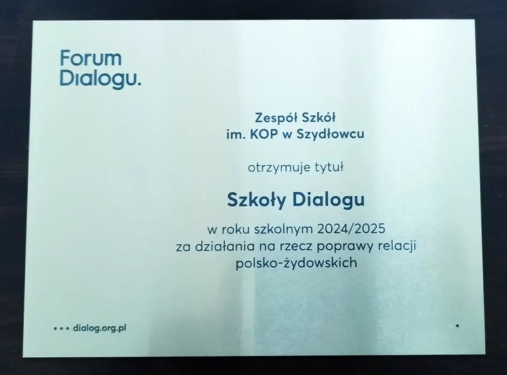Z ogromną radością i dumą informujemy, że Zespół Szkół im. Korpusu Ochrony Pogranicza otrzymał zaszczytny tytuł „Szkoły Dialogu”! Jesteśmy jedną z 25 szkół z całej Polski, której przyznano taki tytuł.